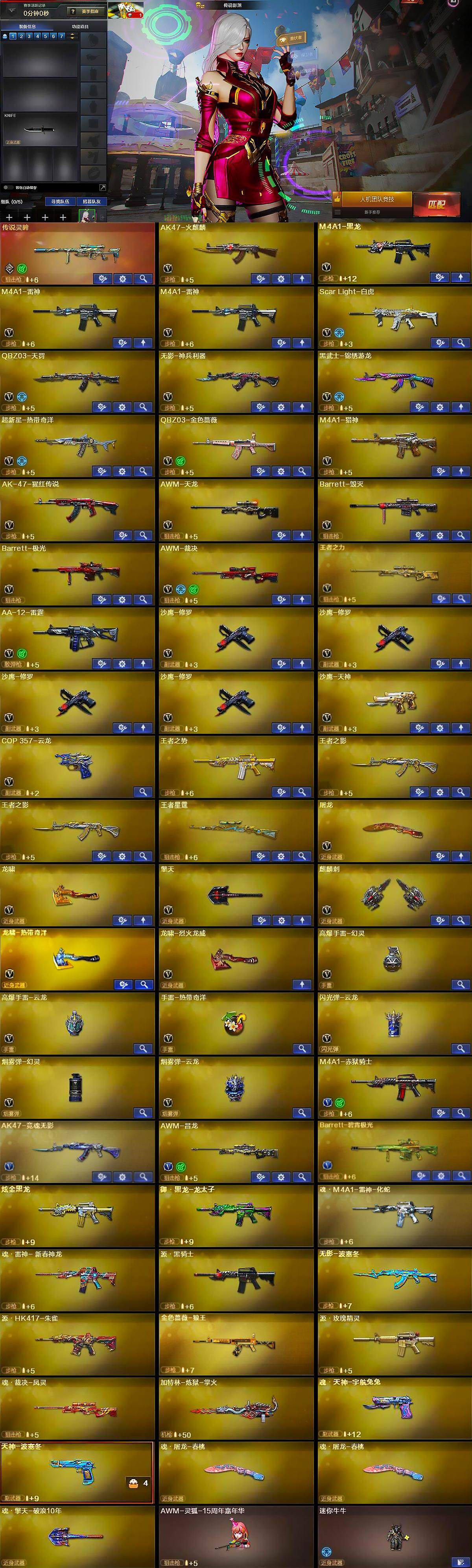 【热门武器】:传说灵眸,QBZ03-金色蔷薇,Scar Light-白虎,沙鹰-修罗*4