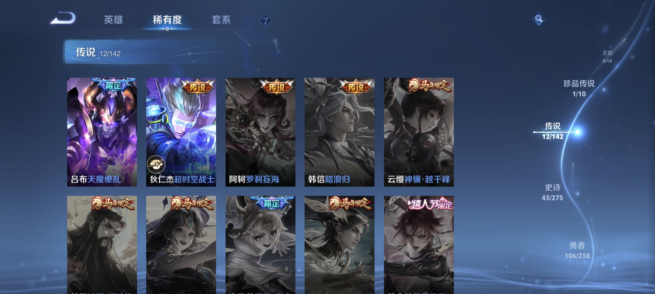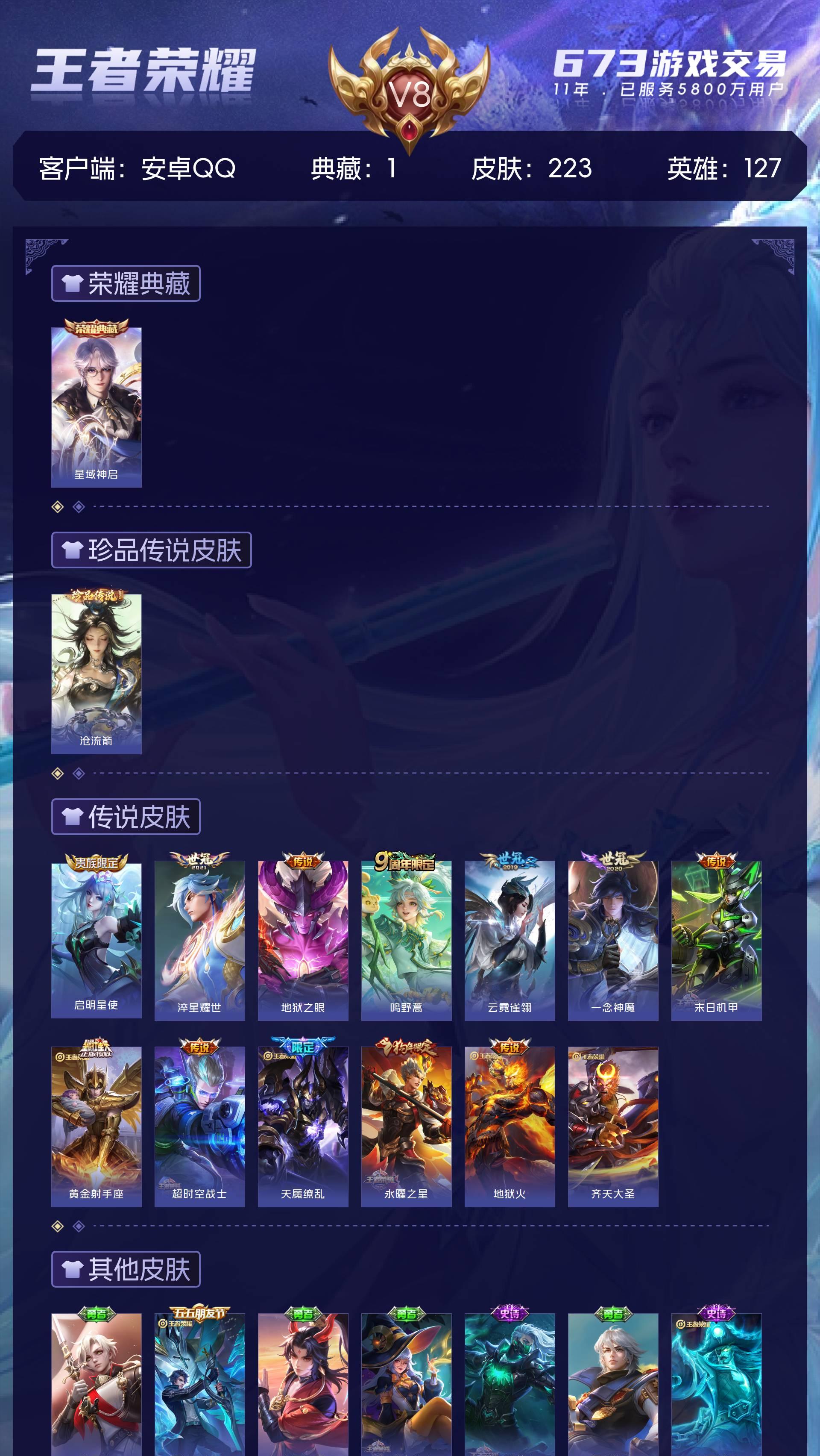 V8/1珍品12传说223皮肤1水晶3星元一念神魔-127英雄【1水晶】 星域神启【珍品传说】沧流箭【星元皮肤】幽冥火 幽冥之眼 未来机甲