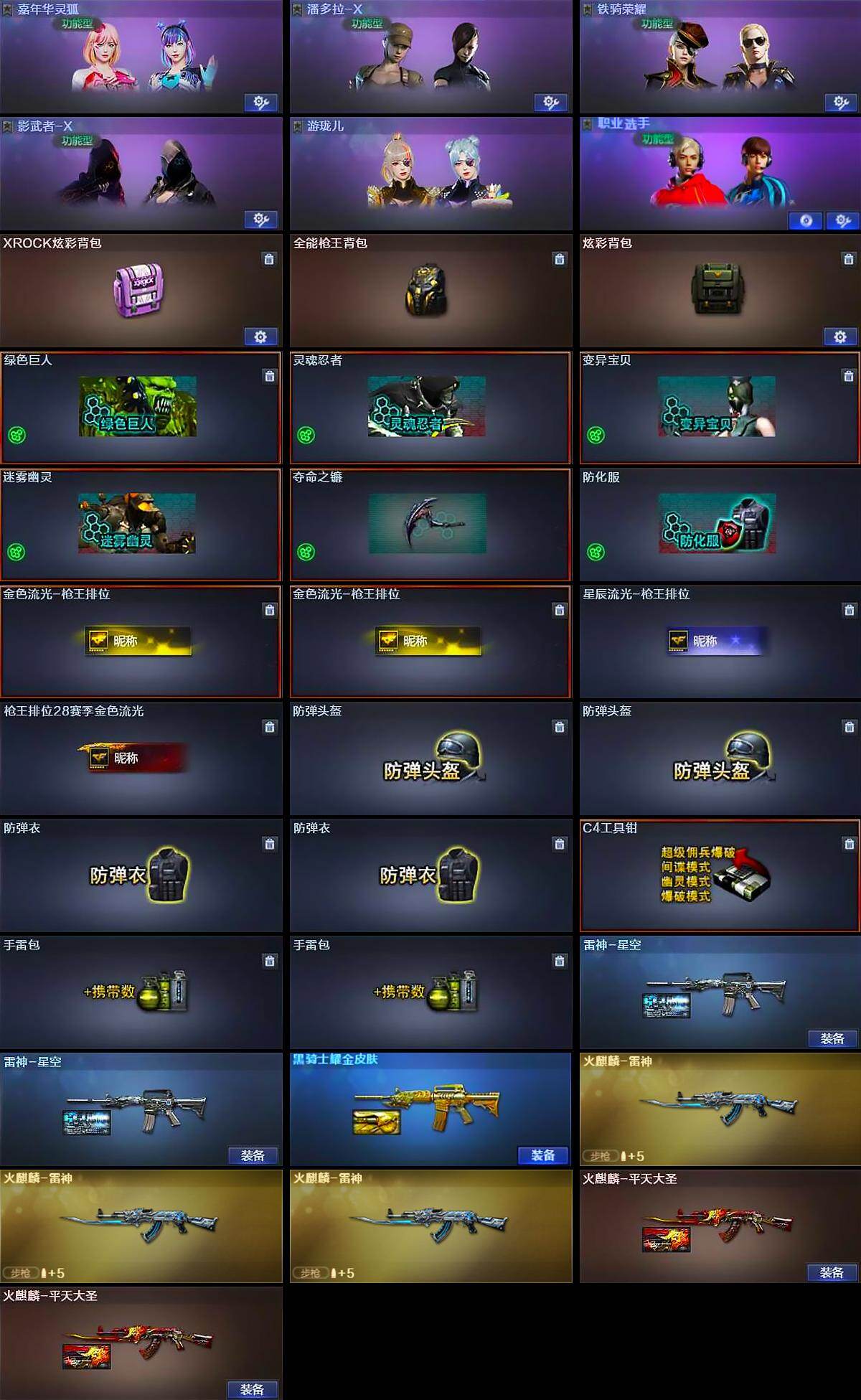 【角色】:嘉年华灵狐,潘多拉-X,铁骑荣耀,兔囡囡,影武者-X,游珑儿,职业选手