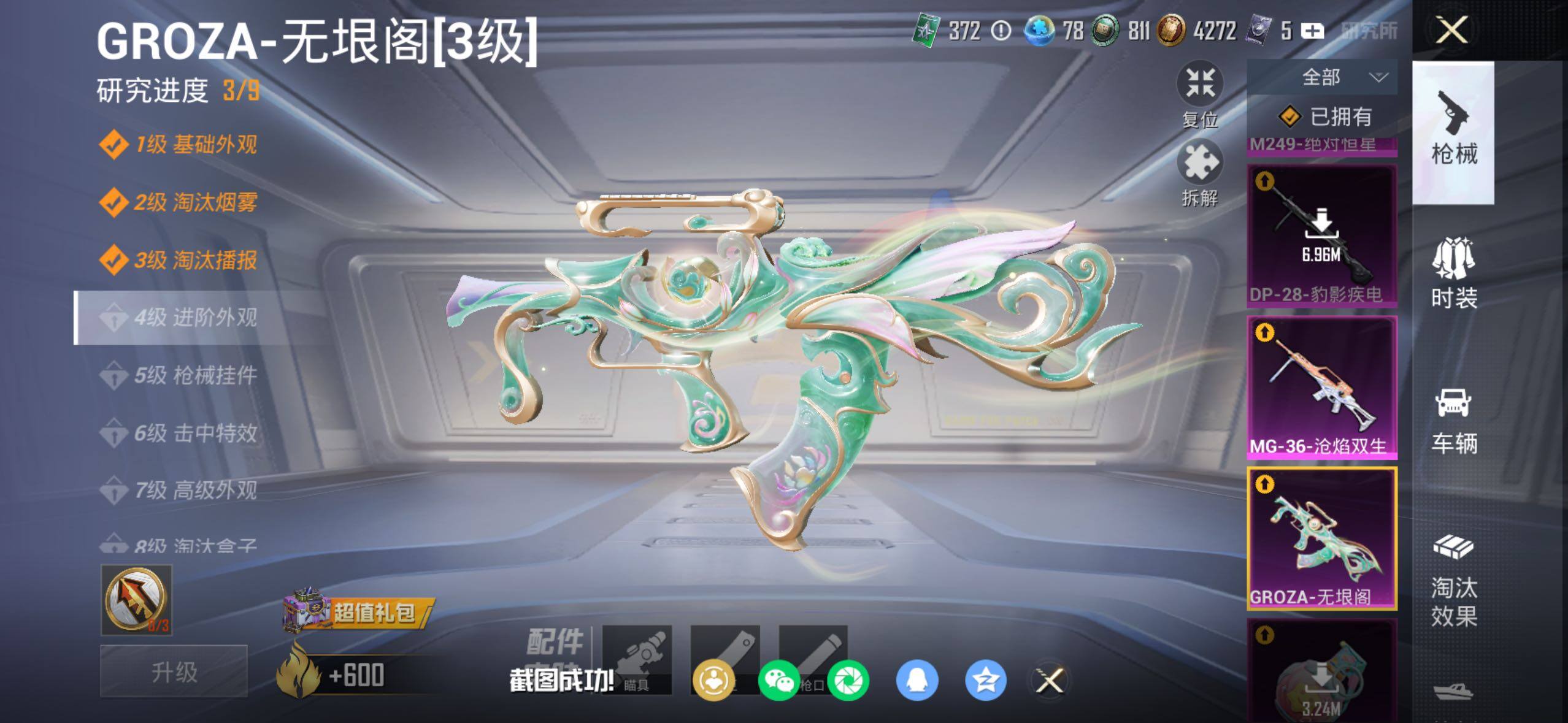 苹果 手Q-8粉装-15特效枪-0载具-5粉色飞行器-48148热力值-5王牌印记-106套装-169枪皮