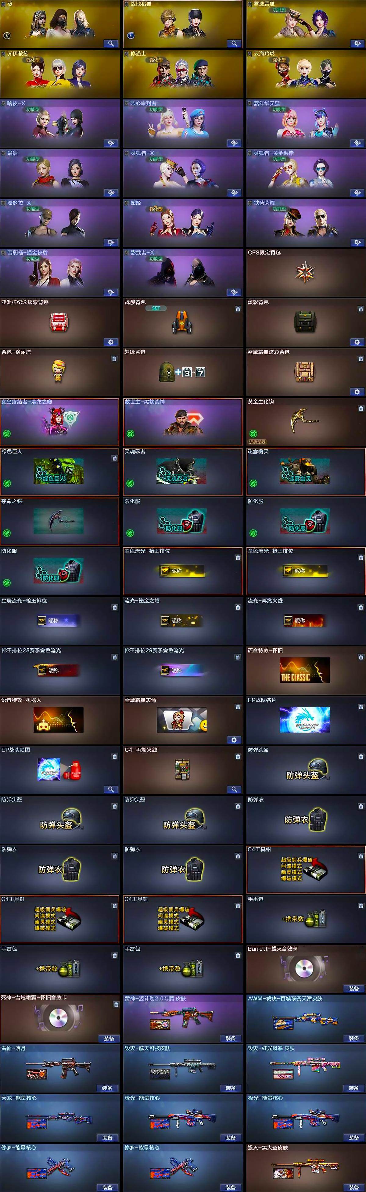 【皮肤】:AWM-裁决-百城联赛天津皮肤,雷神-暗月,雷神-源计划2.0专属 皮肤,毁灭-黑大圣皮肤,毁灭-航天科技皮肤,毁灭-虹光风暴 皮肤,毁灭-英雄计划 皮肤,天龙-能量核