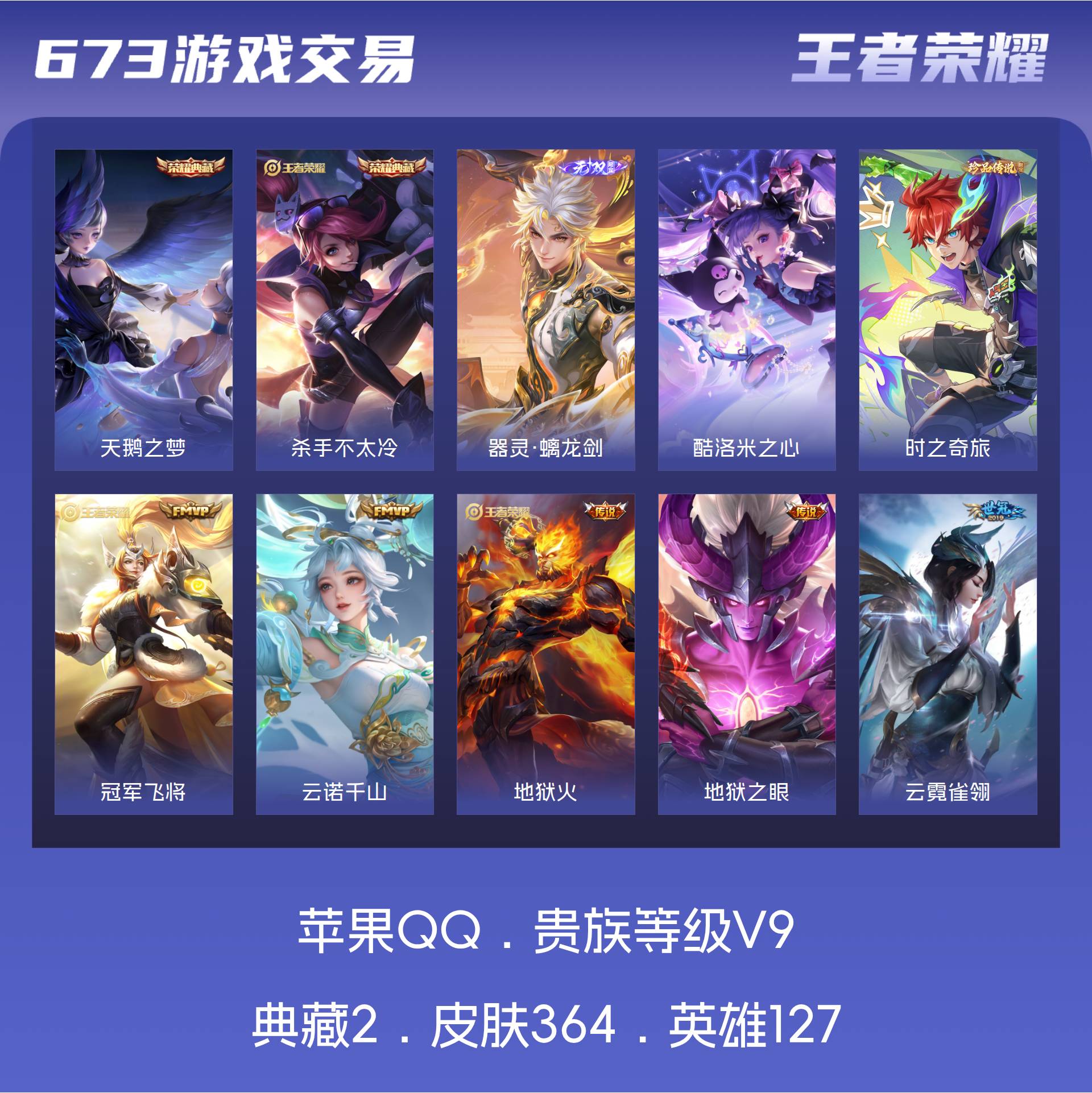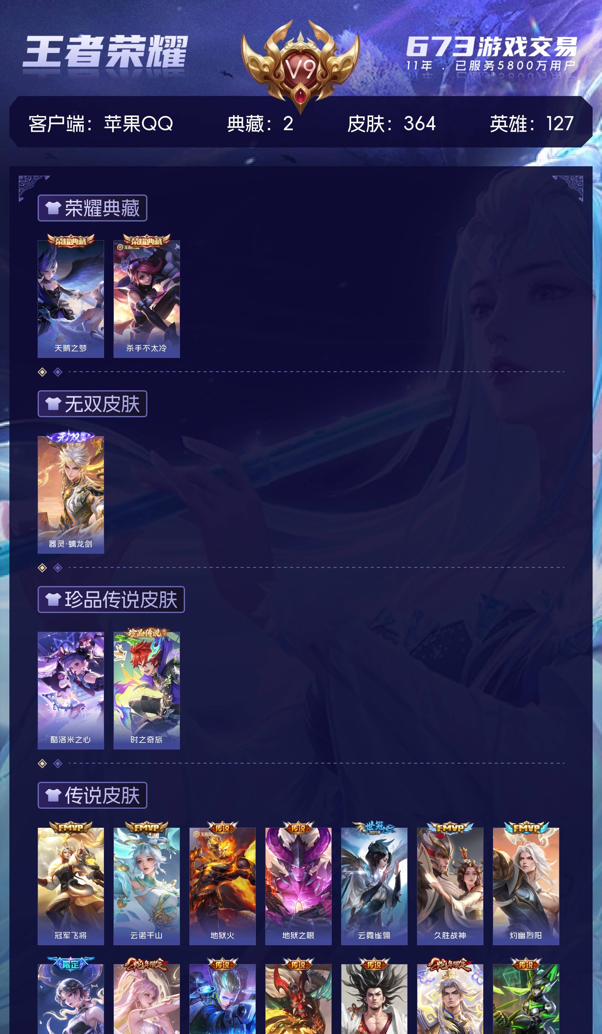 A553/【英雄数量】127/【皮肤数量】364/【区服】苹果QQ1