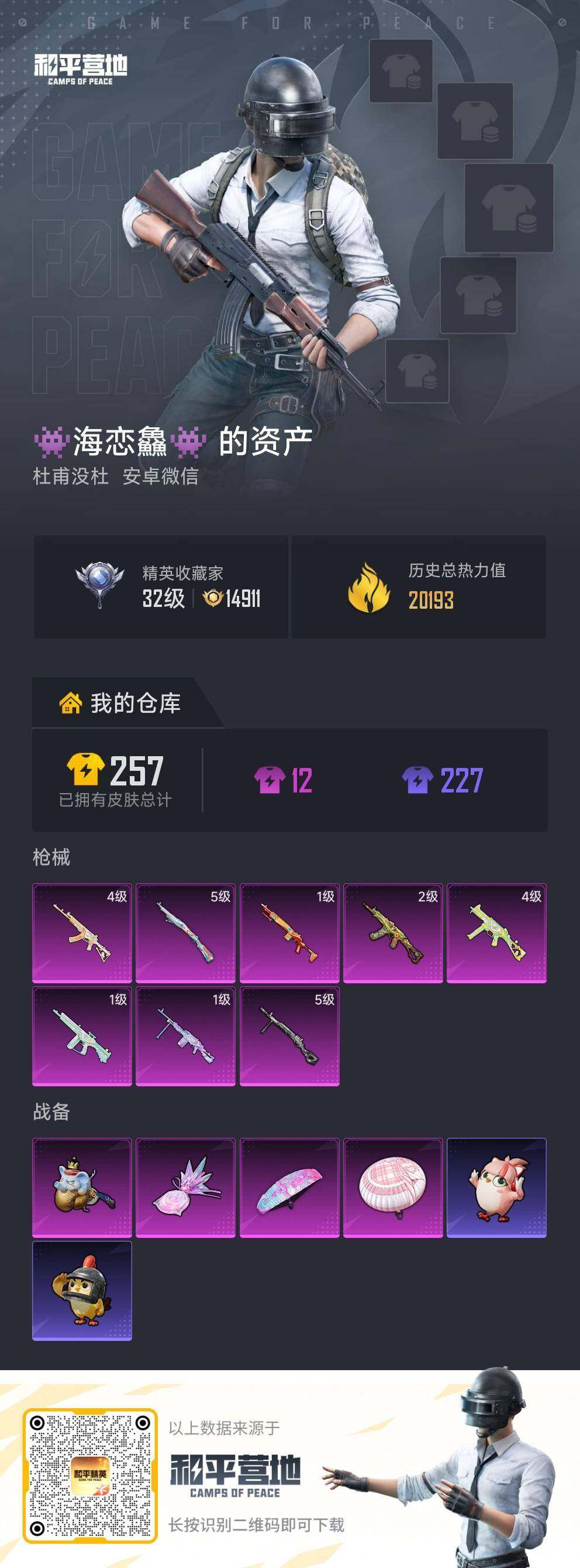 安卓 微信-0粉装-8特效枪-0载具-2粉色飞行器-20193热力值-2王牌印记-44套装-80枪皮