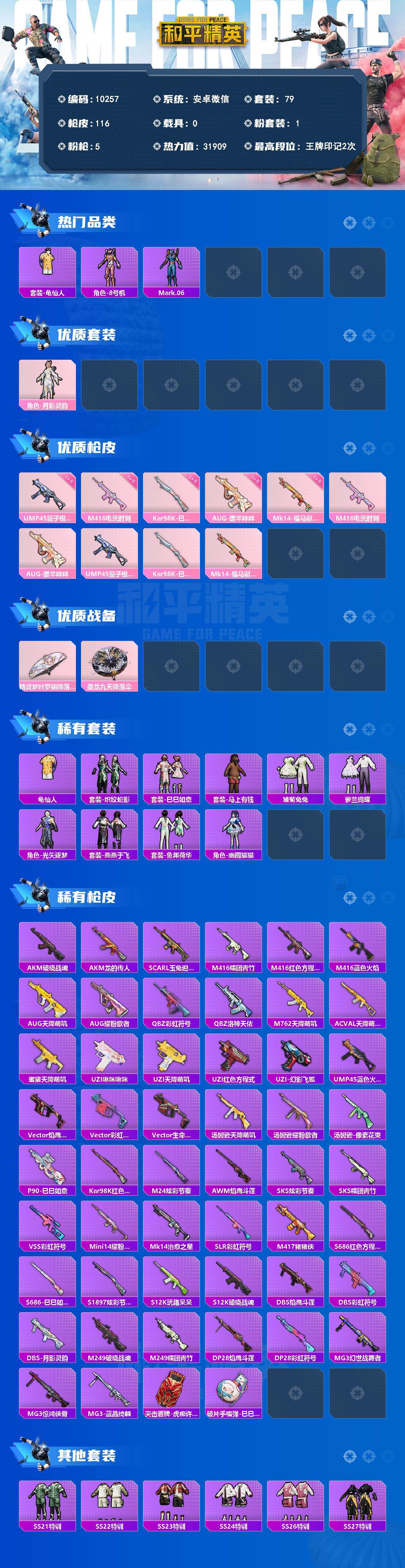 粉螳螂/蓝螳螂!安卓 微信-1粉装-5特效枪-0载具-0粉色飞行器-31909热力值-2王牌印记-79套装-116枪皮