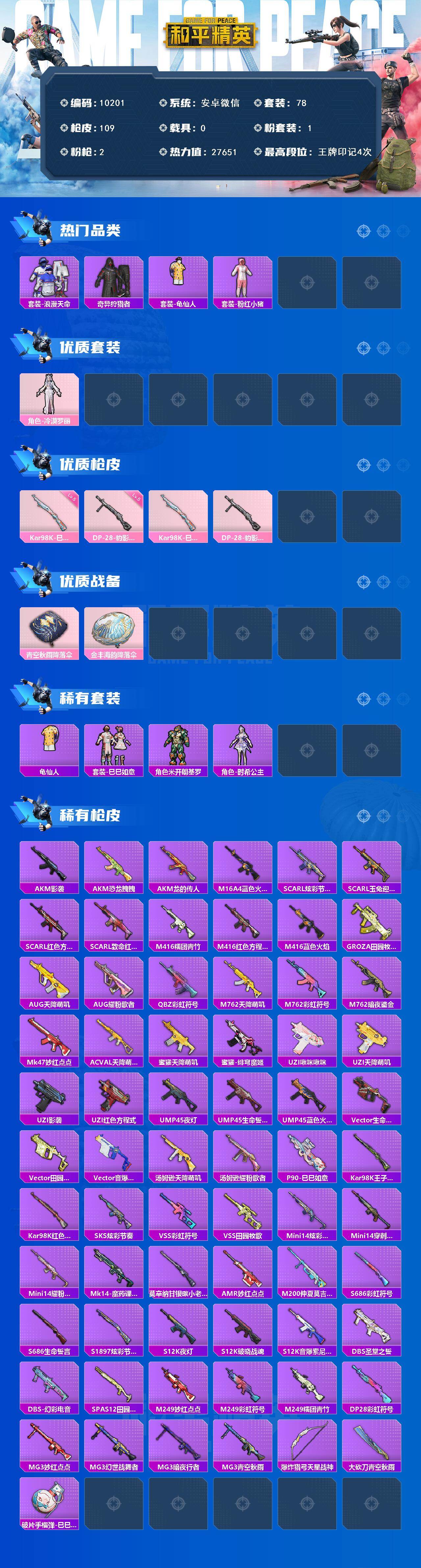 安卓 微信-1粉装-2特效枪-0载具-0粉色飞行器-27651热力值-4王牌印记-78套装-109枪皮