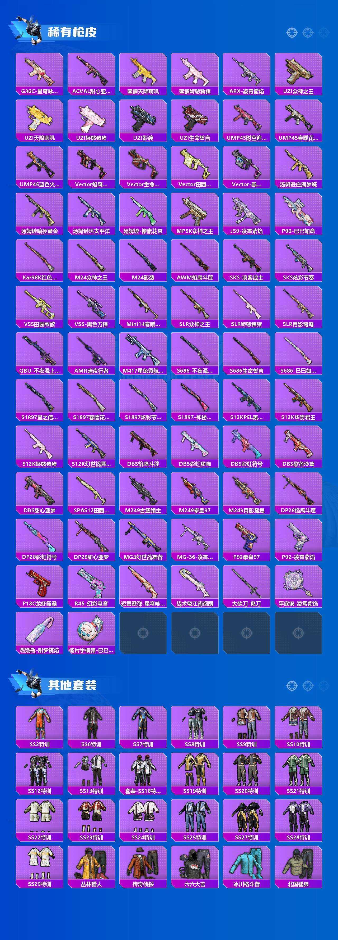 【粉色枪皮等级】:AKM-炫紫旋律(五级),M416-心之恋语(七级),ACE32-萌骑漫游(五级),Vector-环太平洋(五级),AKS