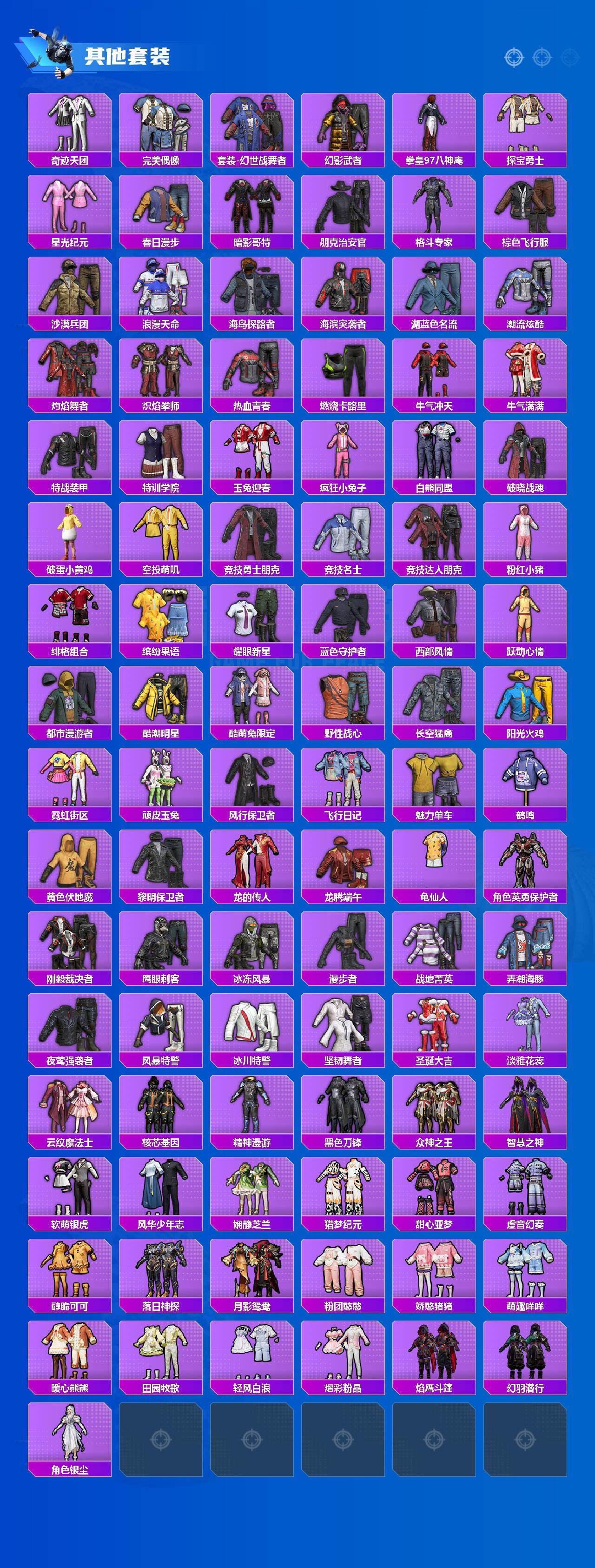 【粉色套装】:粉装-飓风飞鹰,粉装-薄荷物语,角色-复仇流浪者,粉装-旋转彩虹,角色-美雪,角色-美琪,角色-萨利娅,角色-凤凰座 一辉,粉装-星穹咏叹调