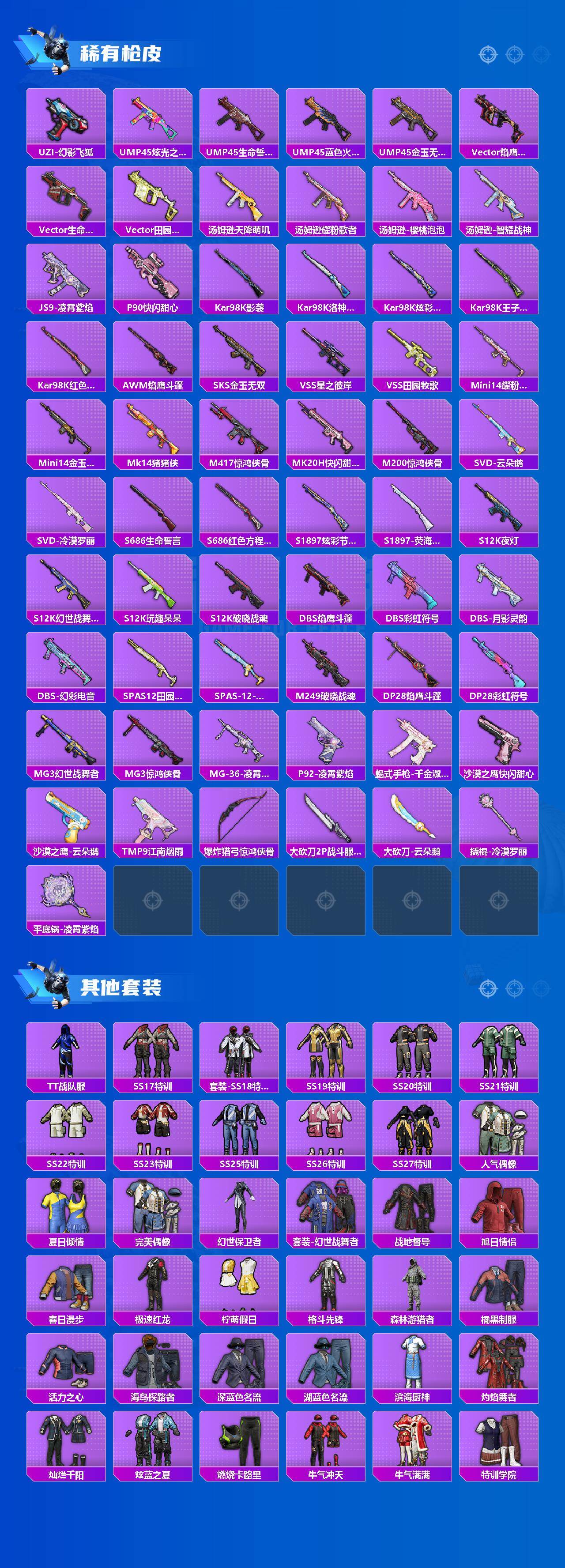 【粉色枪皮等级】:GROZA-镜光银凌(五级),ACE32-萌骑漫游(五级),UMP45-萌骑冒险(五级),Kar98K-巳巳如意(