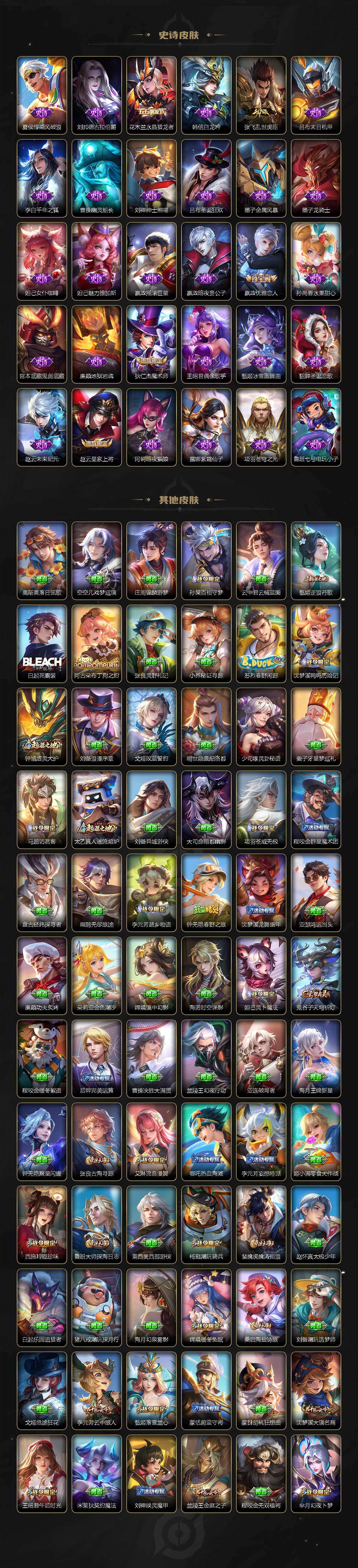 【英雄全皮】:刘禅全皮,宫本武藏全皮,戈娅全皮,空空儿全皮