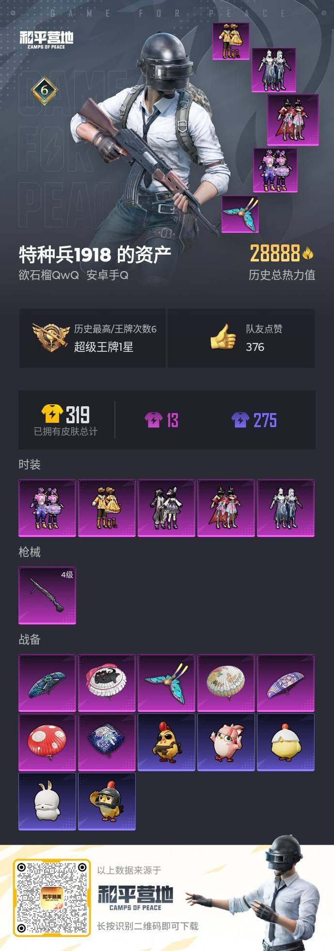 安卓 手Q-5粉装-1特效枪-0载具-1粉色飞行器-28888热力值-6王牌印记-79套装-90枪皮