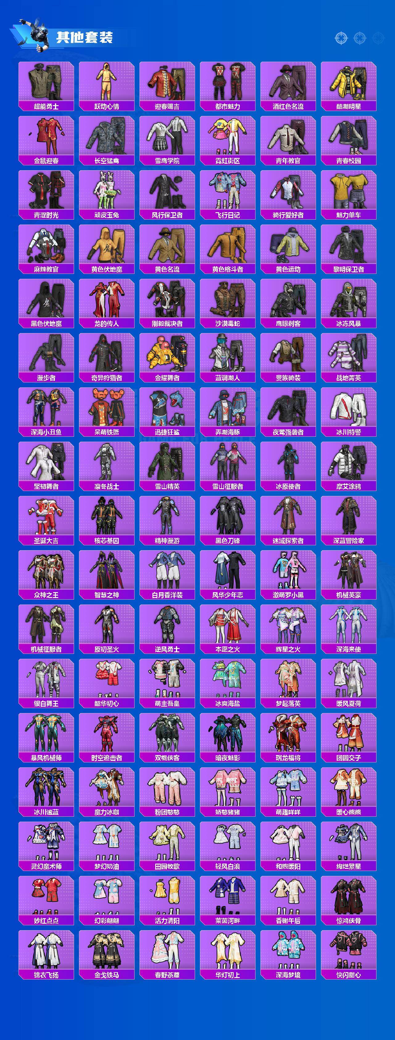 【粉色套装】:粉装-深海曼妙,粉装-桀骜红莲,粉装-骨龙祭渊,粉装-齐天大圣,粉装-傲雪凌霜,粉装-未来歌姬,角色-圣堂之誓,粉装-金丰海韵,角色-羊梦糖心