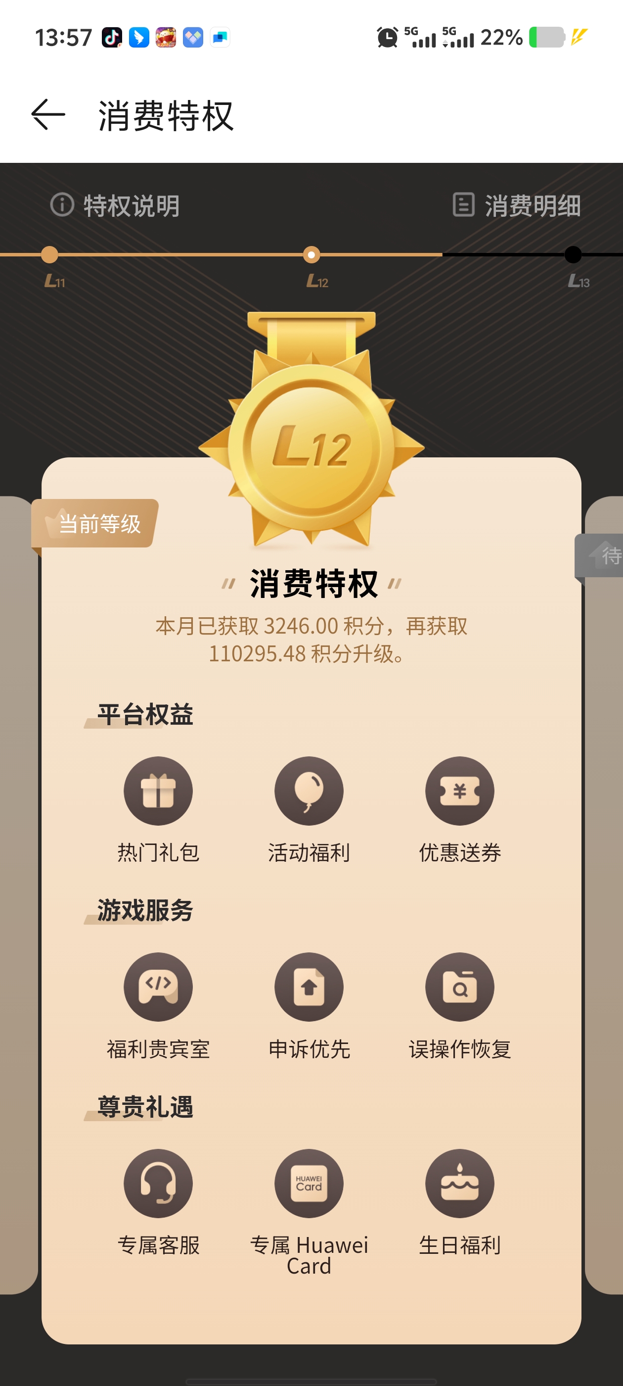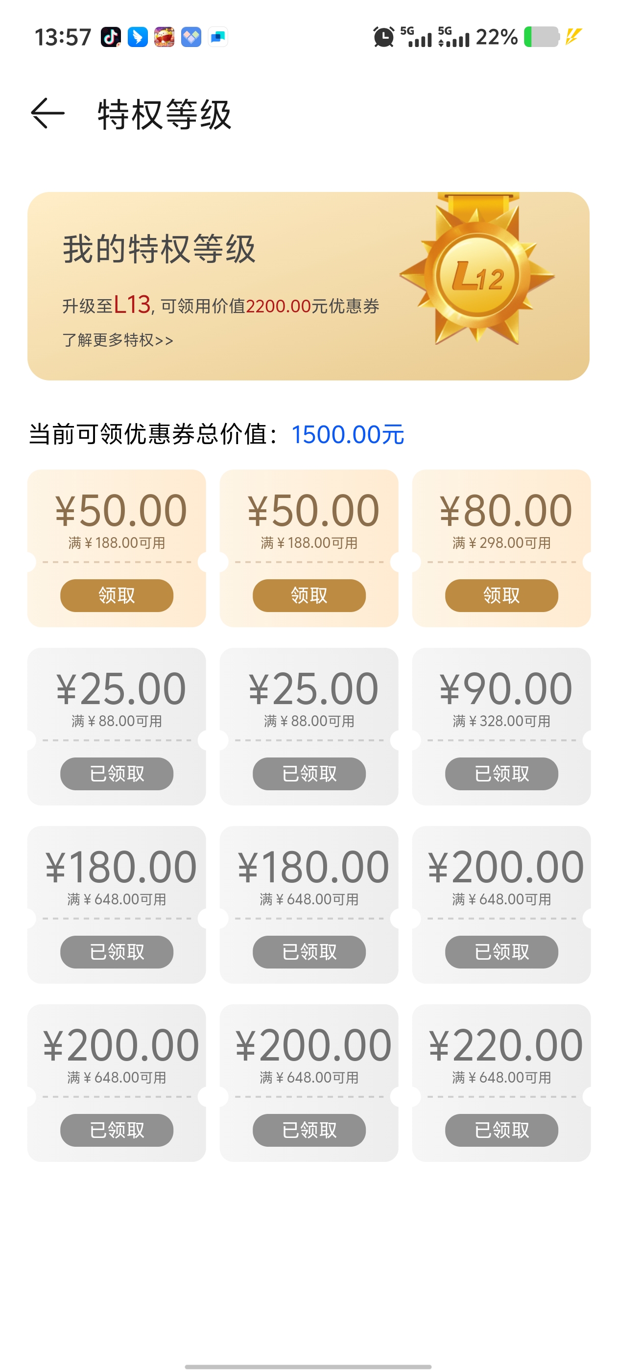 华为特权12,差11万升级13,一个月领取价值1500的优惠劵