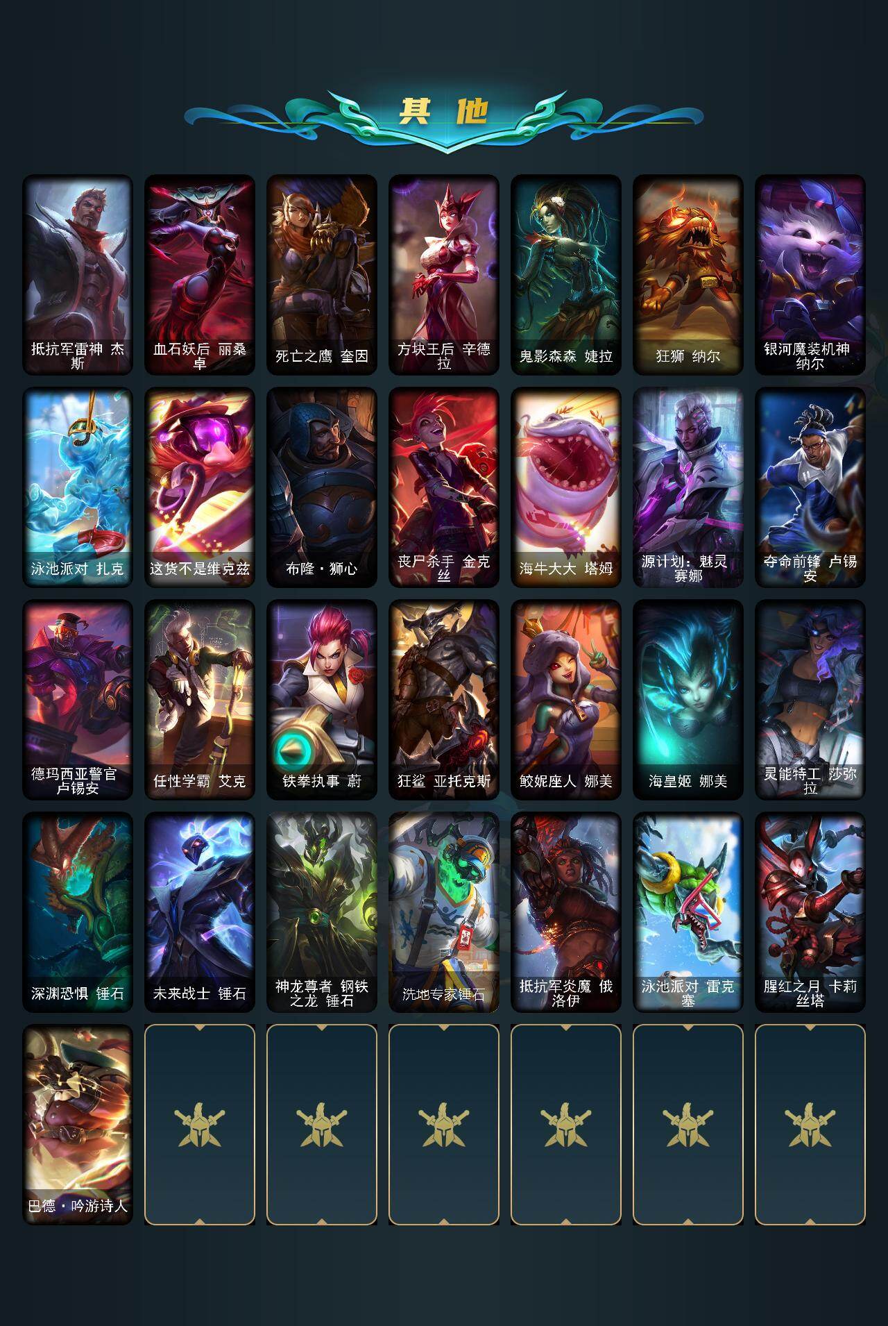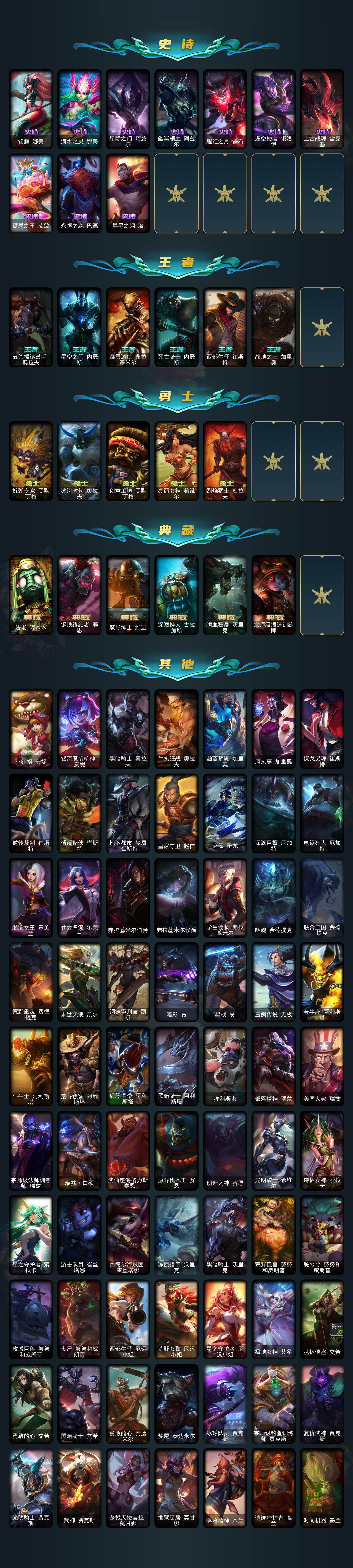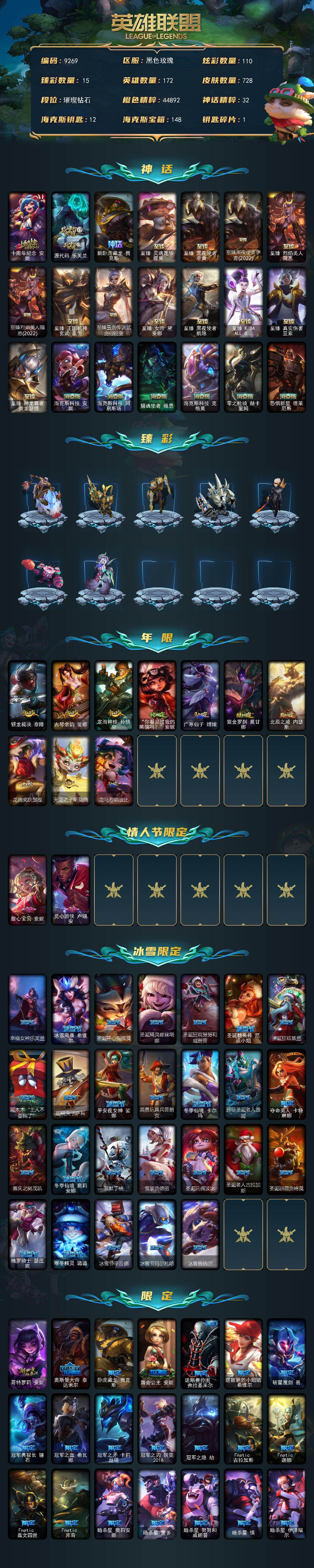 钻石段位-172英雄-728皮肤-110炫彩-0终极-21神话-126限定-63传说-192史诗