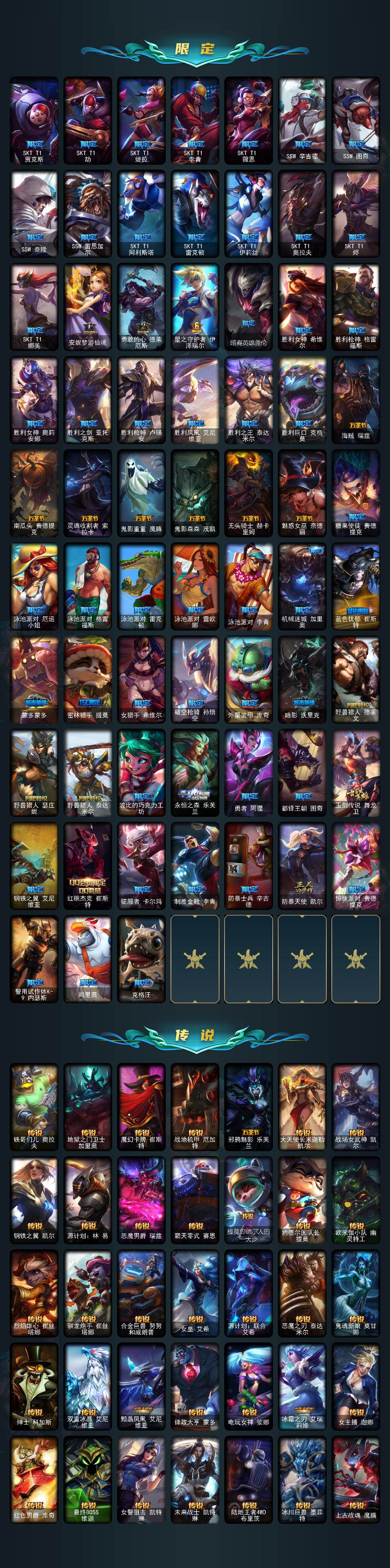 钻石段位-172英雄-728皮肤-110炫彩-0终极-21神话-126限定-63传说