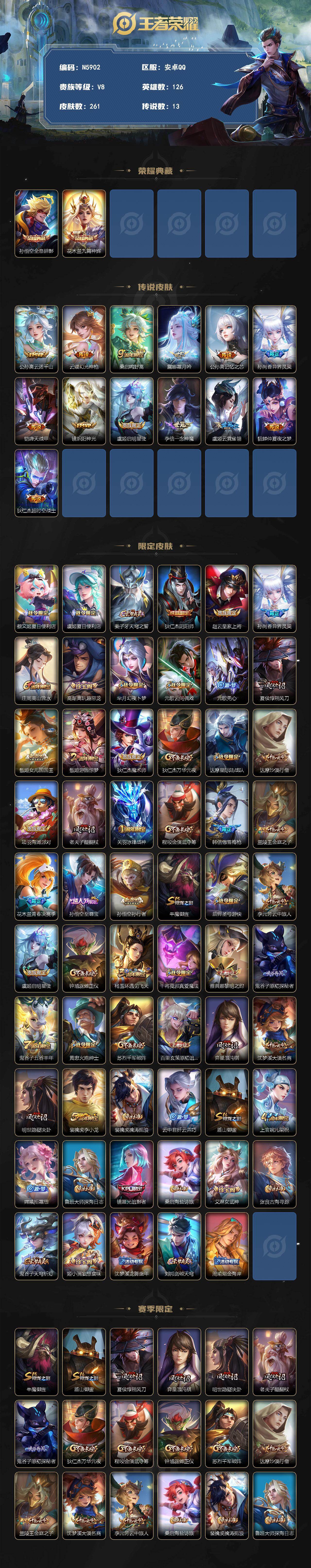 V7-最强王者段位-126英雄-261皮肤-2典藏皮肤-13传说