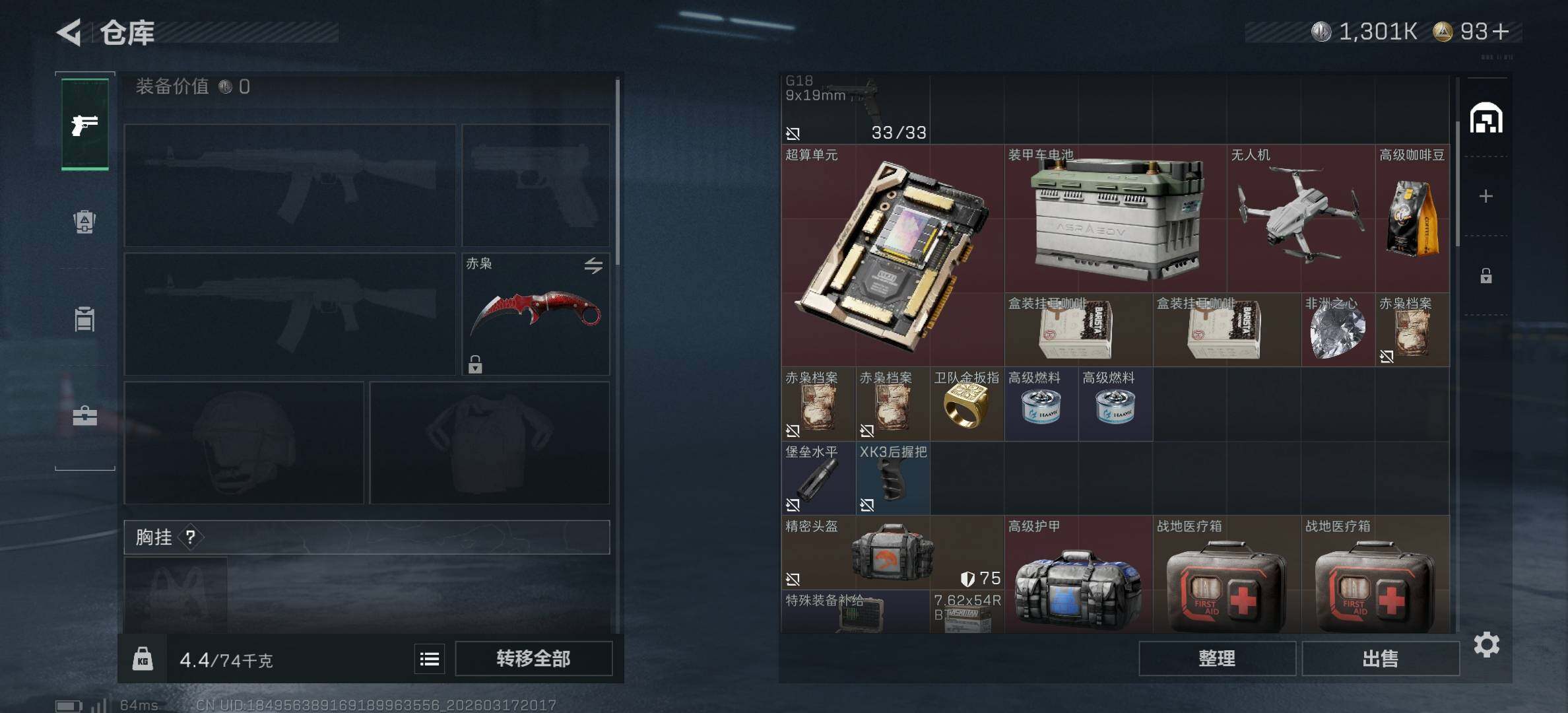35m总资产-1301k哈夫币-36烽火等级-铂金-2战场等级-无军衔