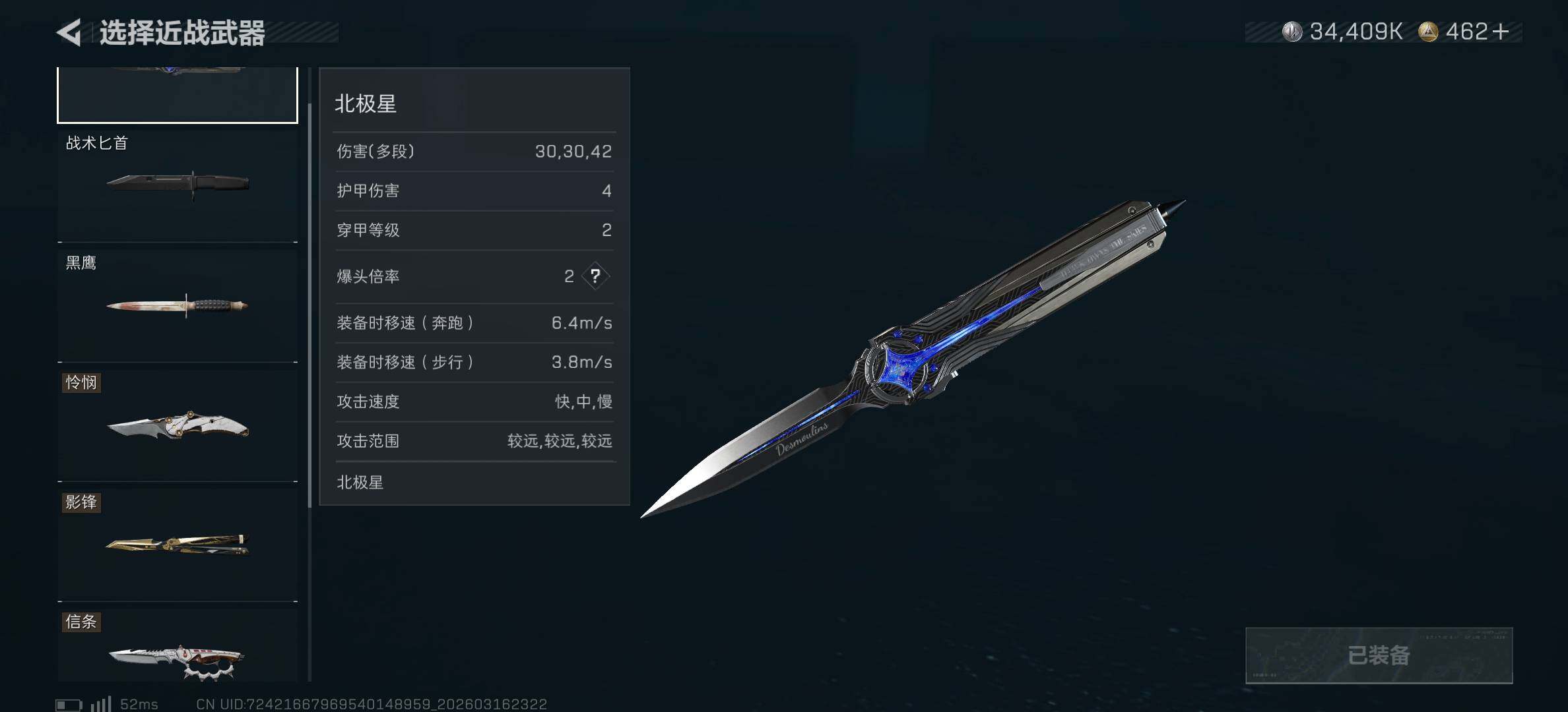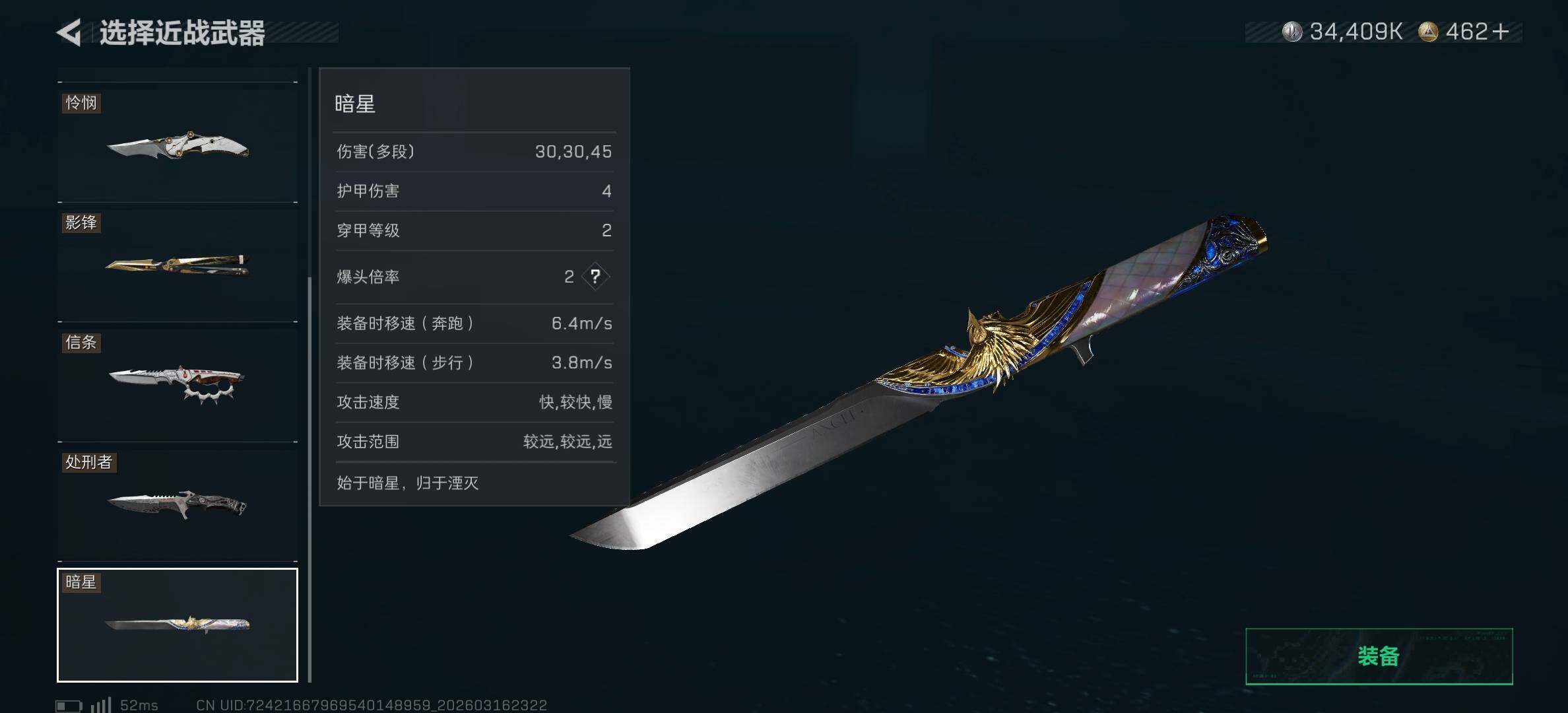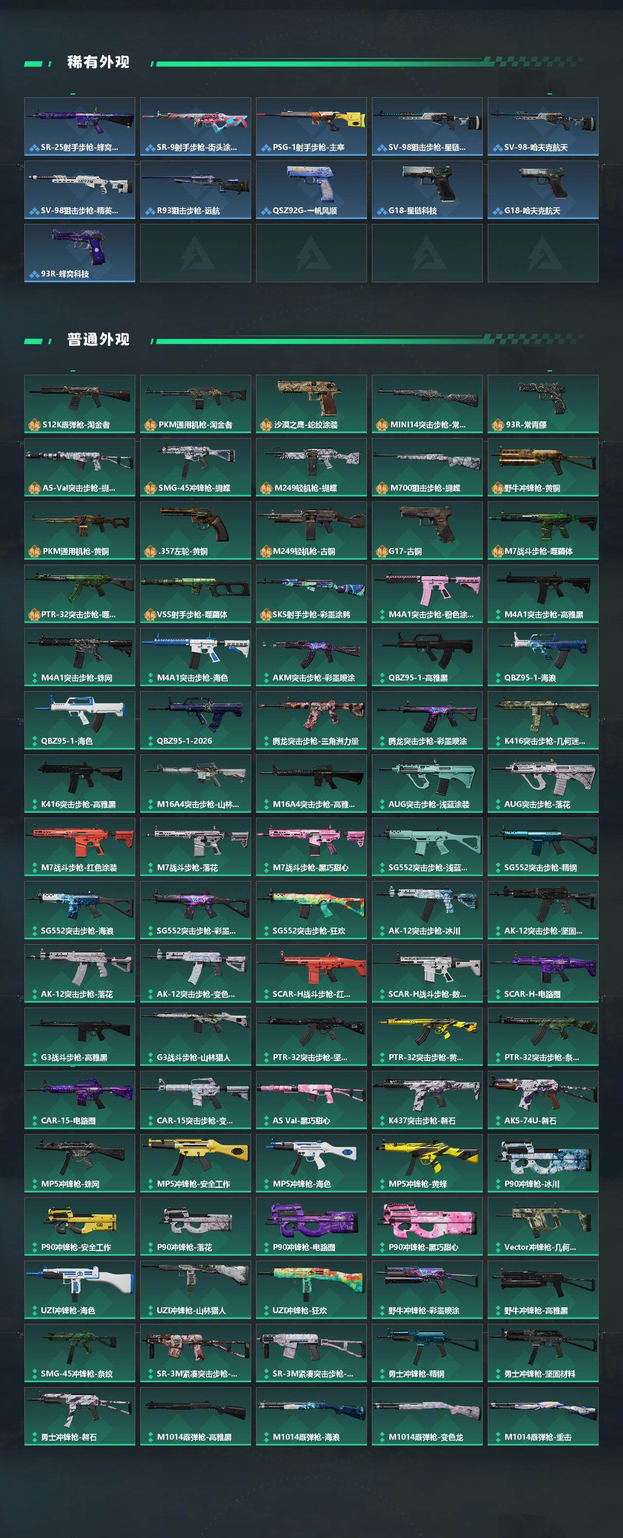 【近战皮肤】:近战-暗星,近战-北极星,近战-信条,近战-影锋,近战-怜悯,近战-处刑者3级,近战-黑鹰