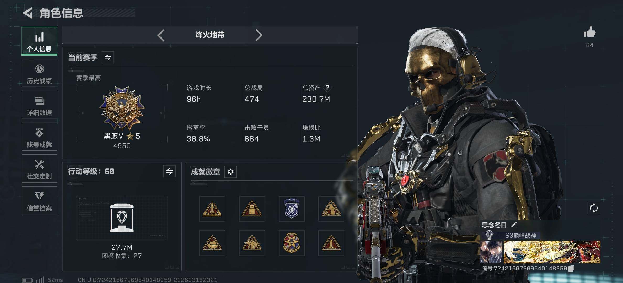 228m总资产-34409k哈夫币-60烽火等级-黑鹰-29战场等级-上等兵