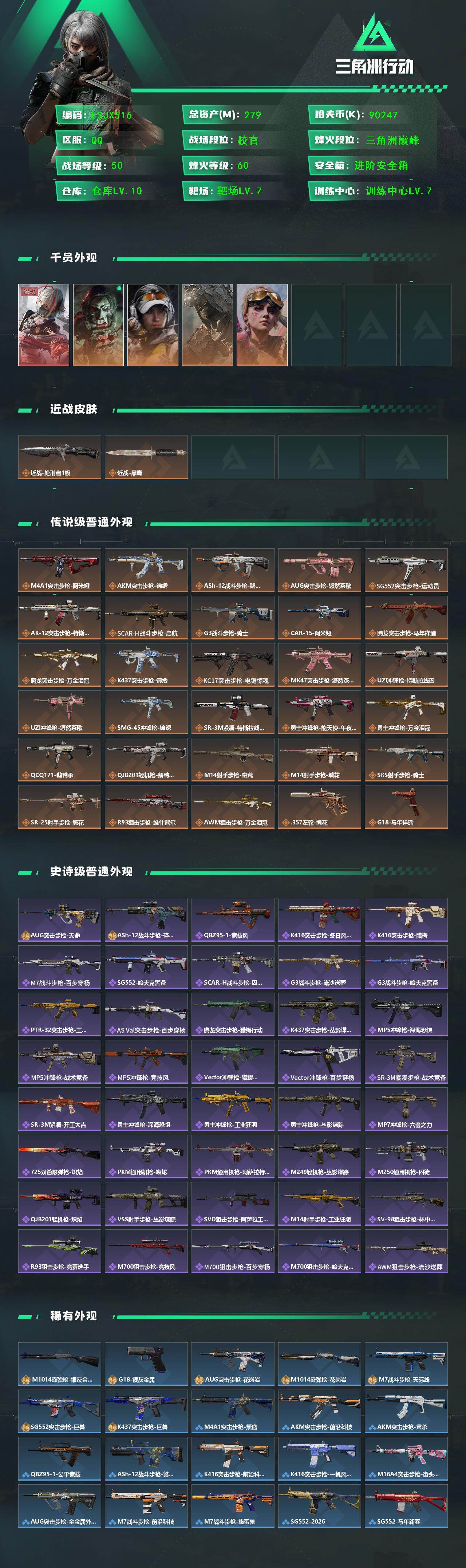 279m总资产-90247k哈夫币-60烽火等级-三角洲巅峰-50战场等级-校官