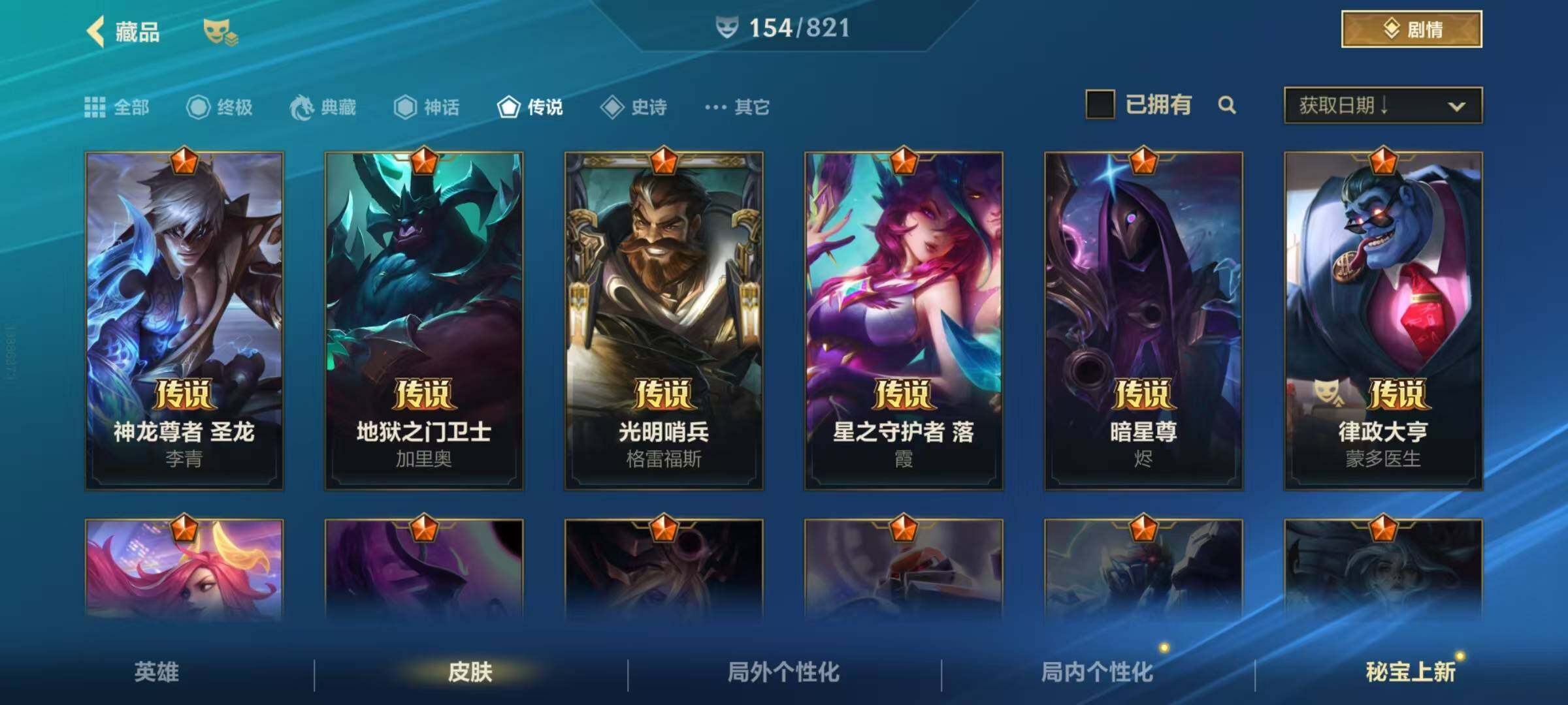 135英雄/154皮肤/1神话/7传说/傲世宗师/