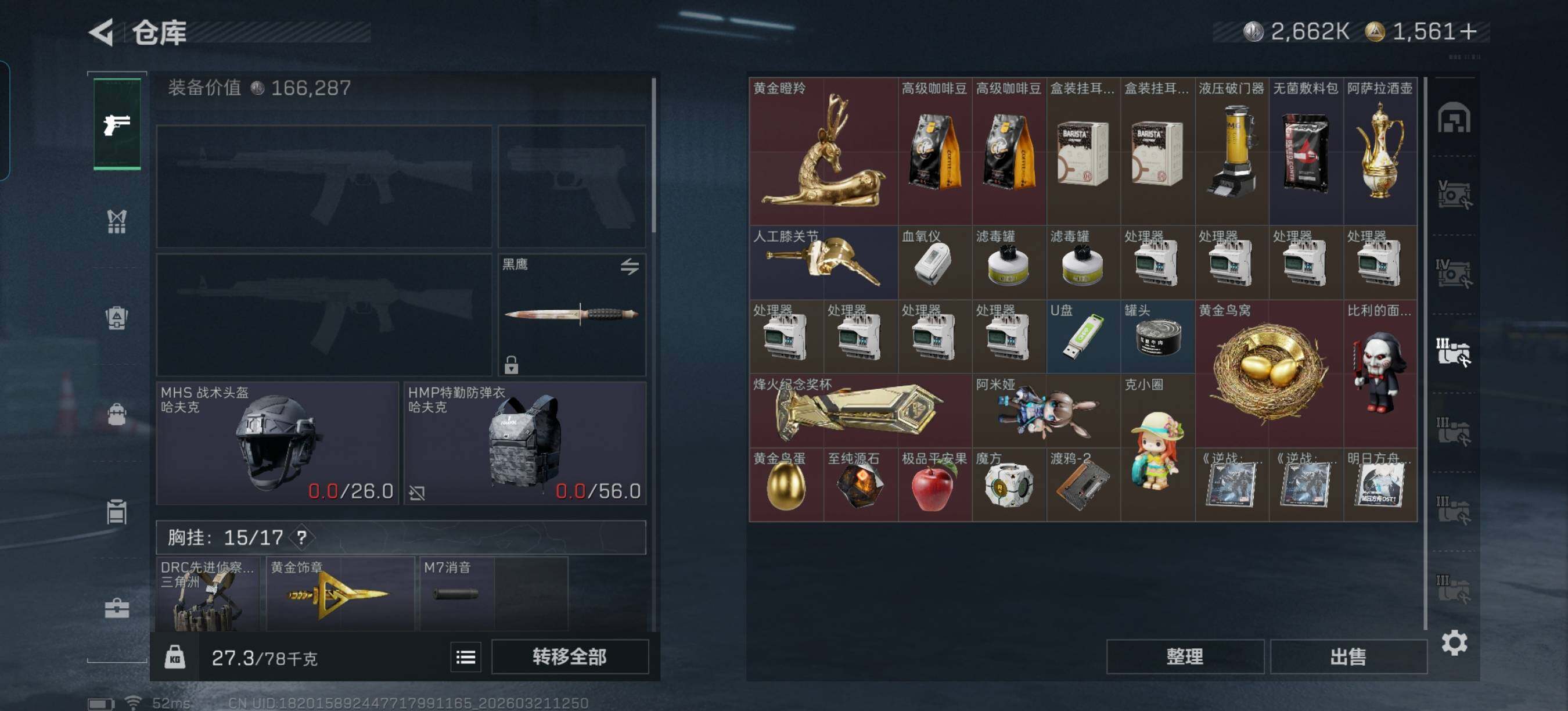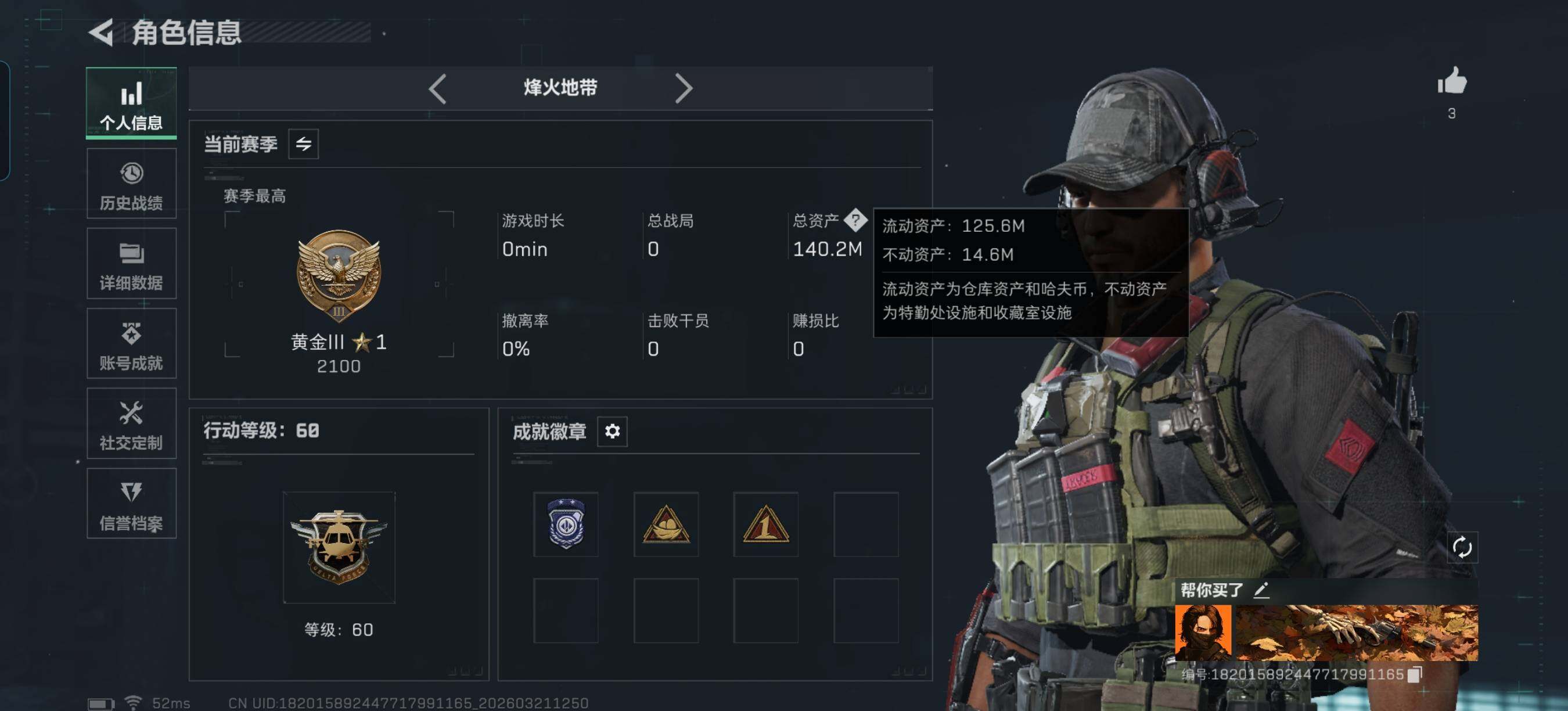140m总资产-2662k哈夫币-60烽火等级-黄金-11战场等级-列兵