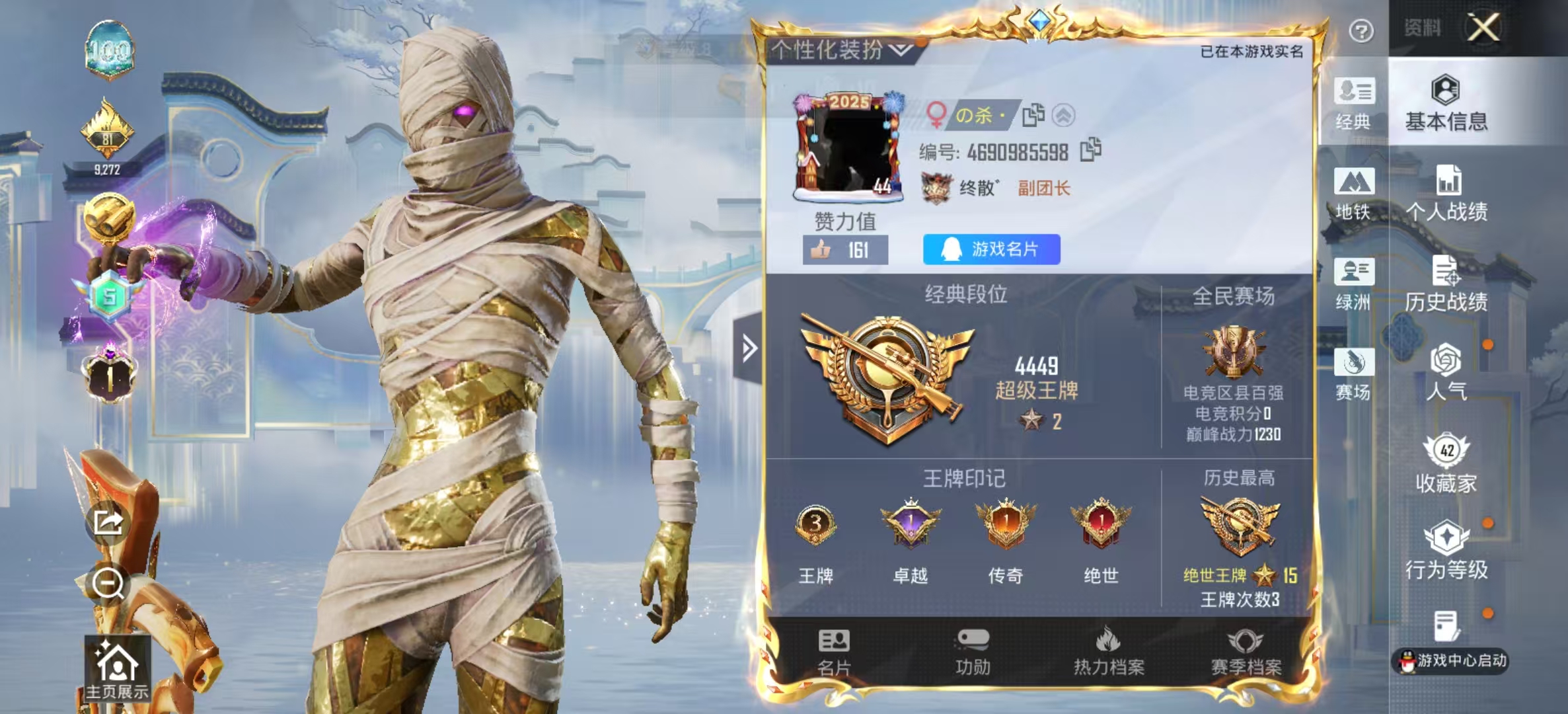 3王牌印记-1红装-1粉装-5特效枪-27482热力值-44套装-89枪皮-1卓越印记-1传奇印记