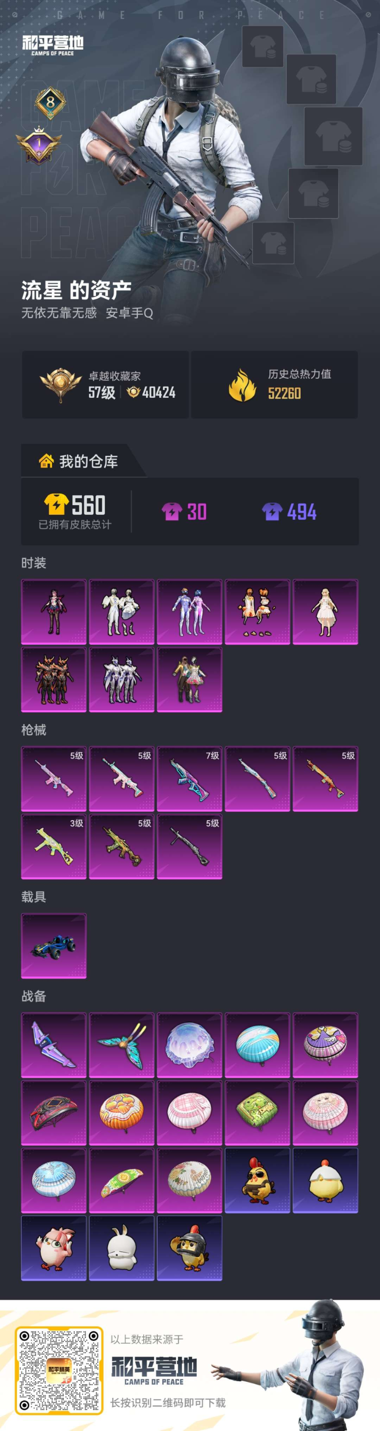 1载具-105套装-170枪皮-2稀有1载具8粉装8特效枪9热门105套装