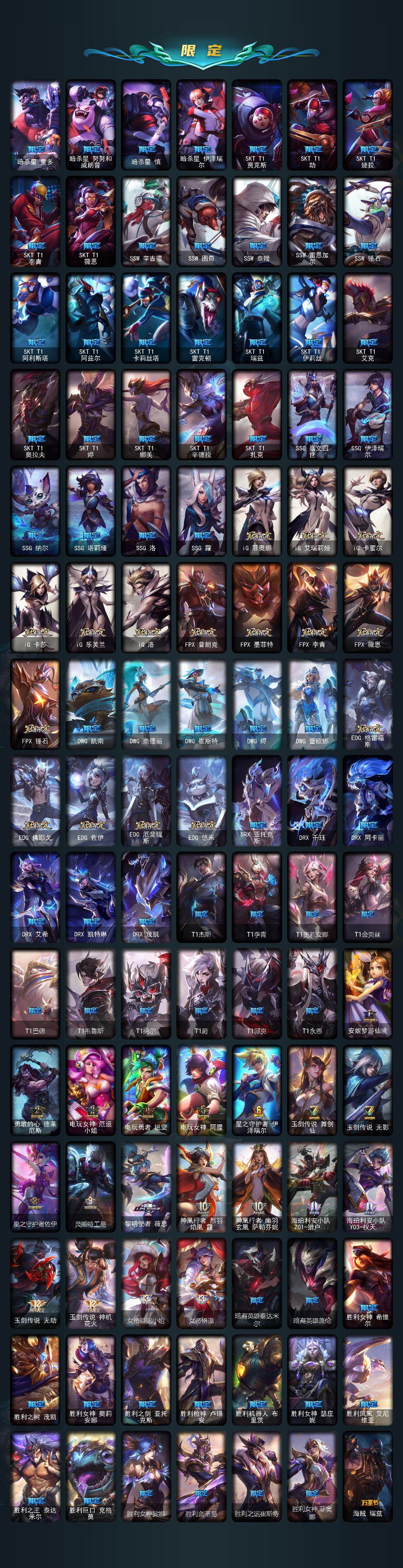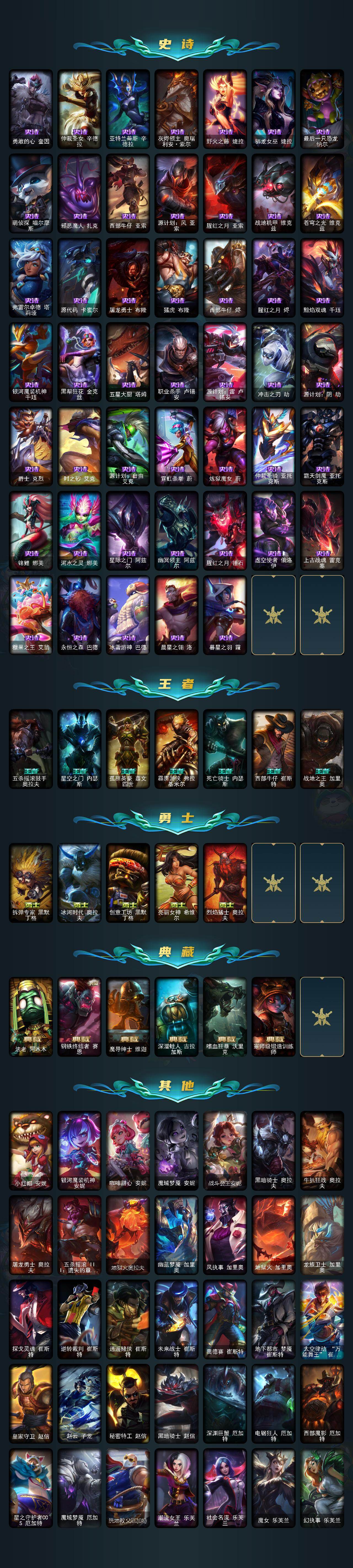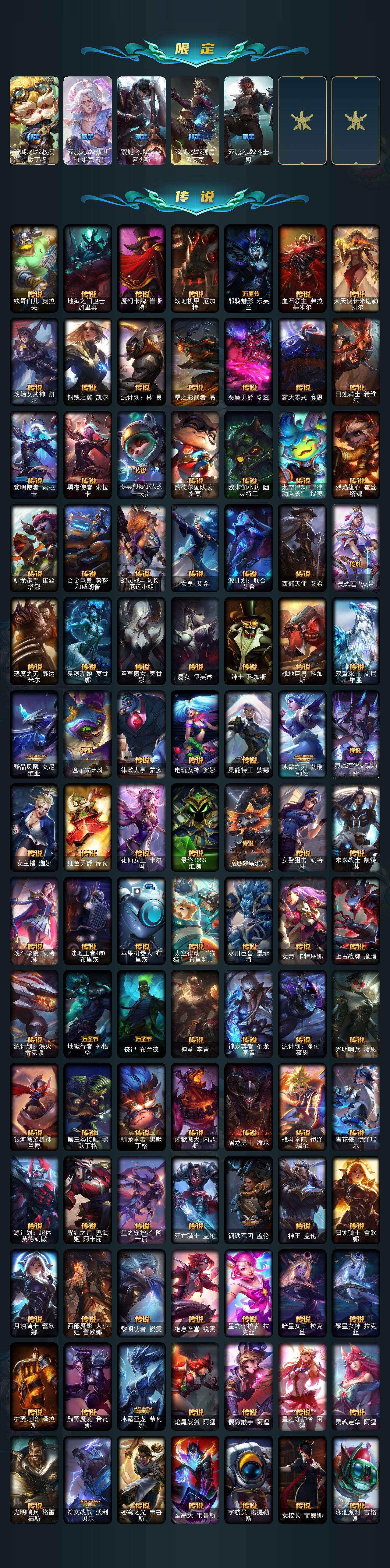 172英雄/1803皮肤/9终极/153神话/390限定/125臻