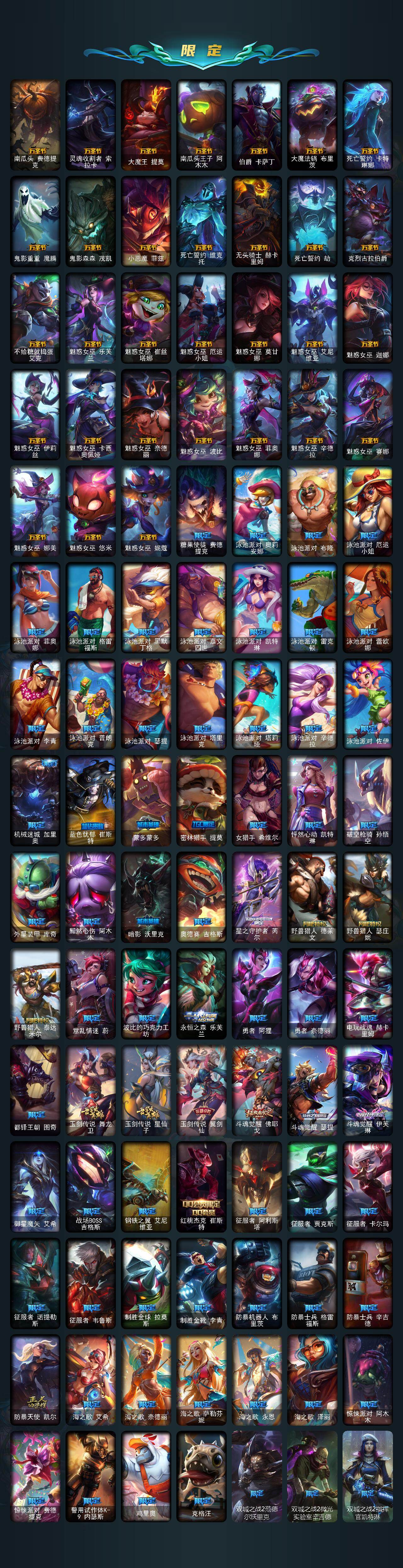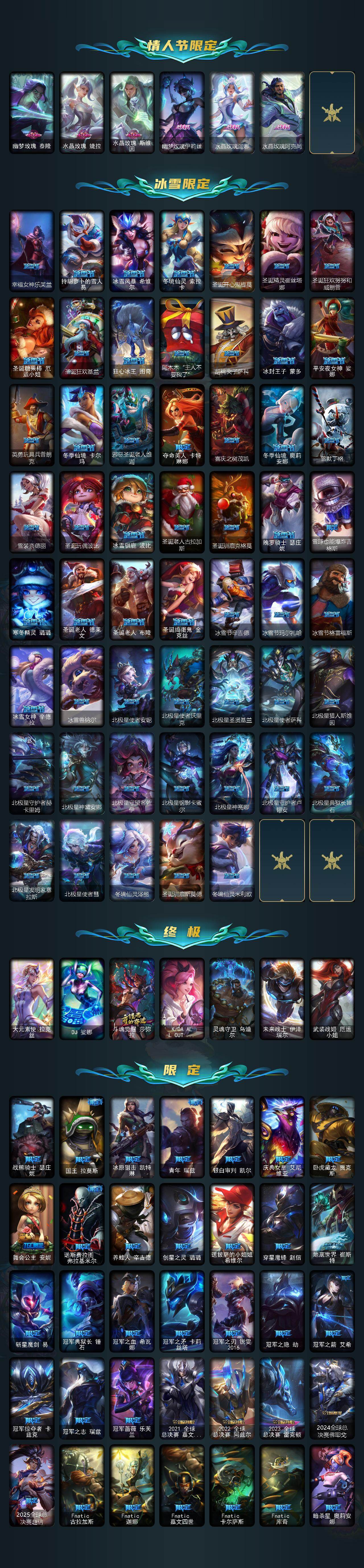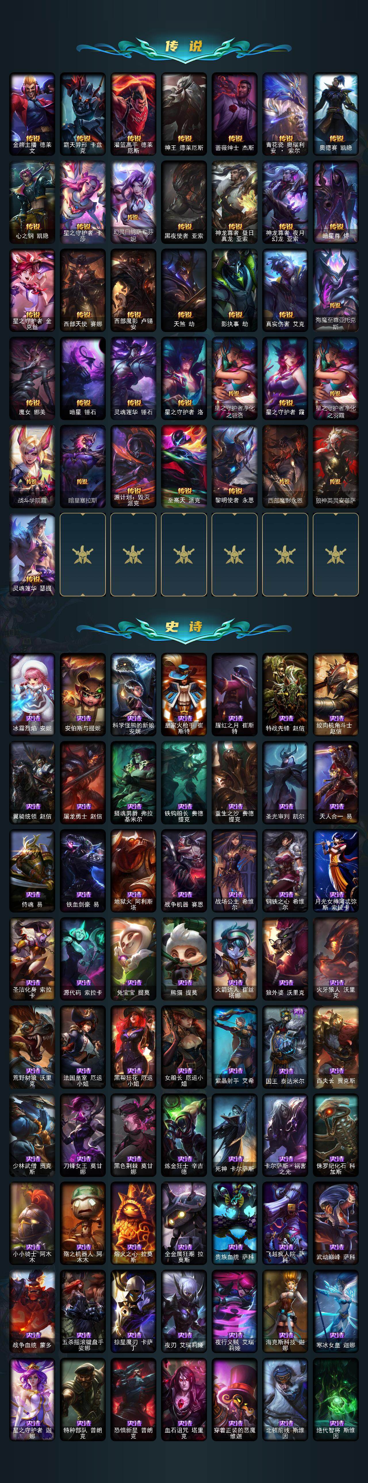 172英雄/1803皮肤/9终极/153神话/390限定/125臻
