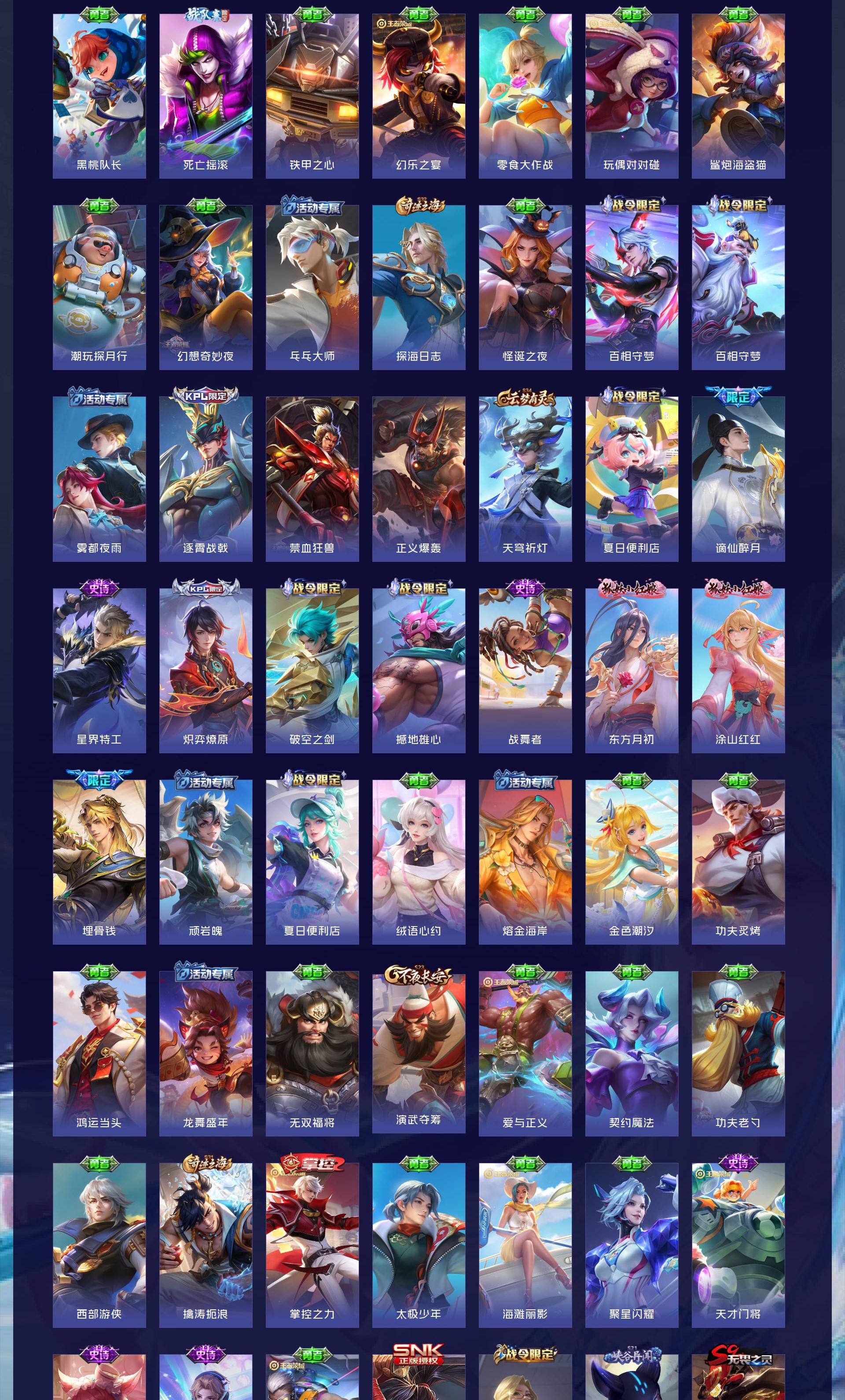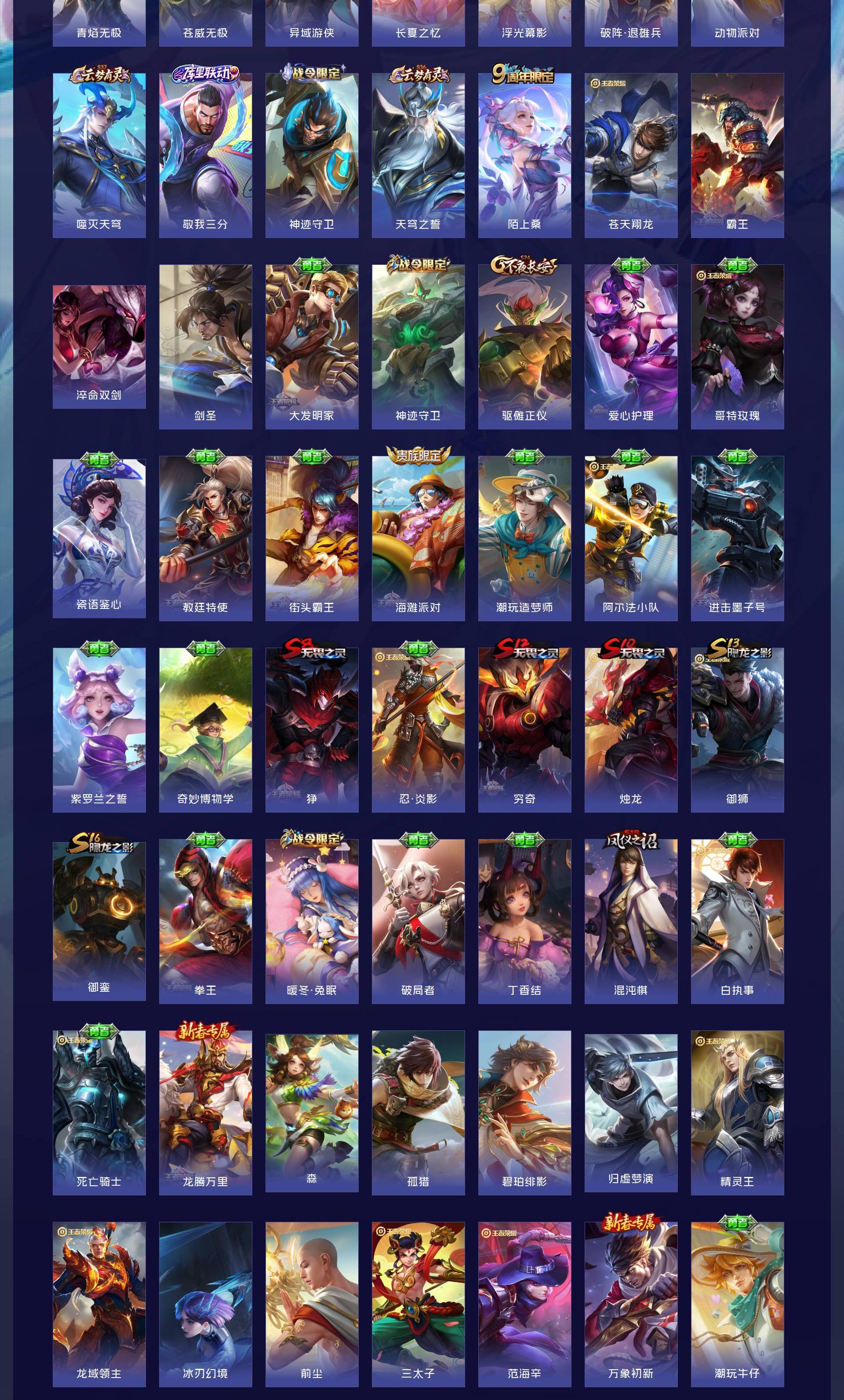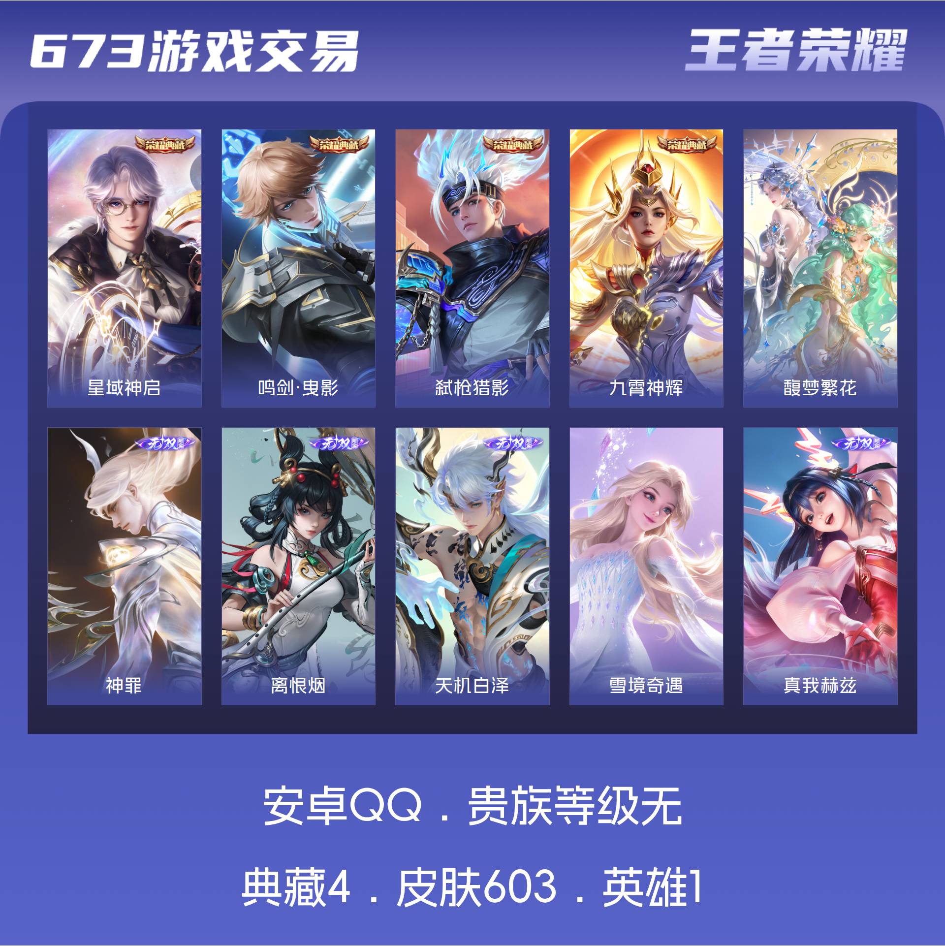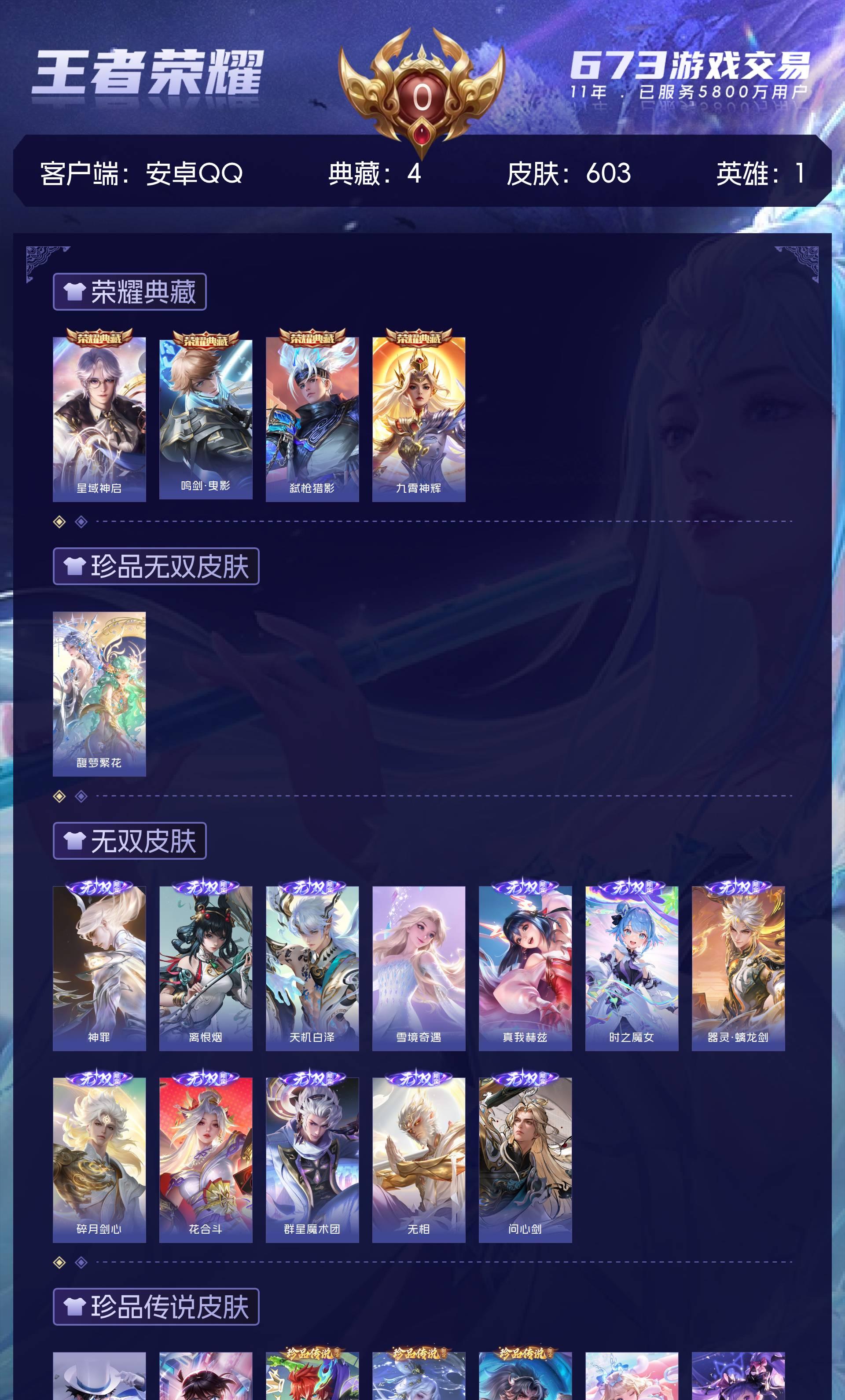 皮肤603 最强王者 荣耀典藏4 珍品无双1 无双皮肤12 珍品传说10 传说111-满无双满珍品