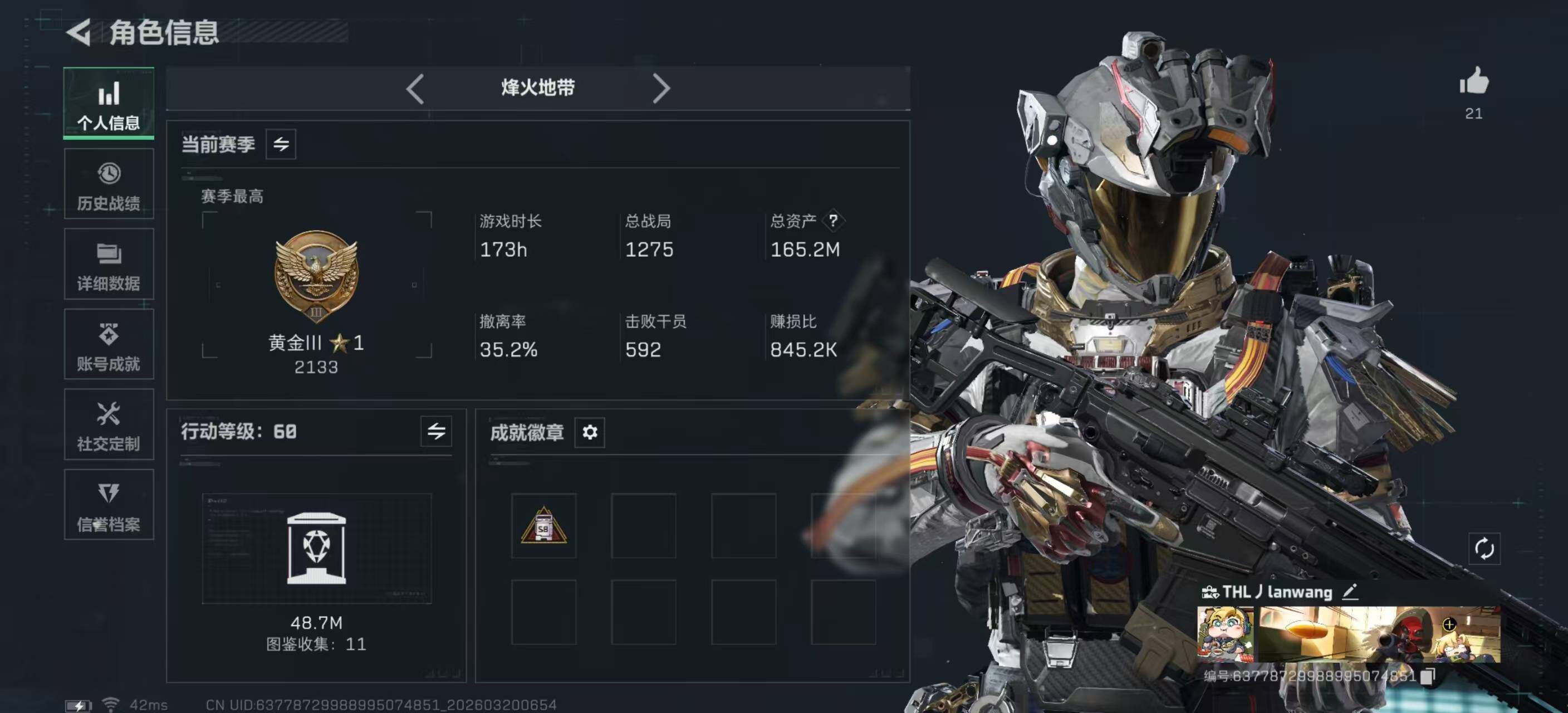 165m总资产-10708k哈夫币-60烽火等级-黄金-9