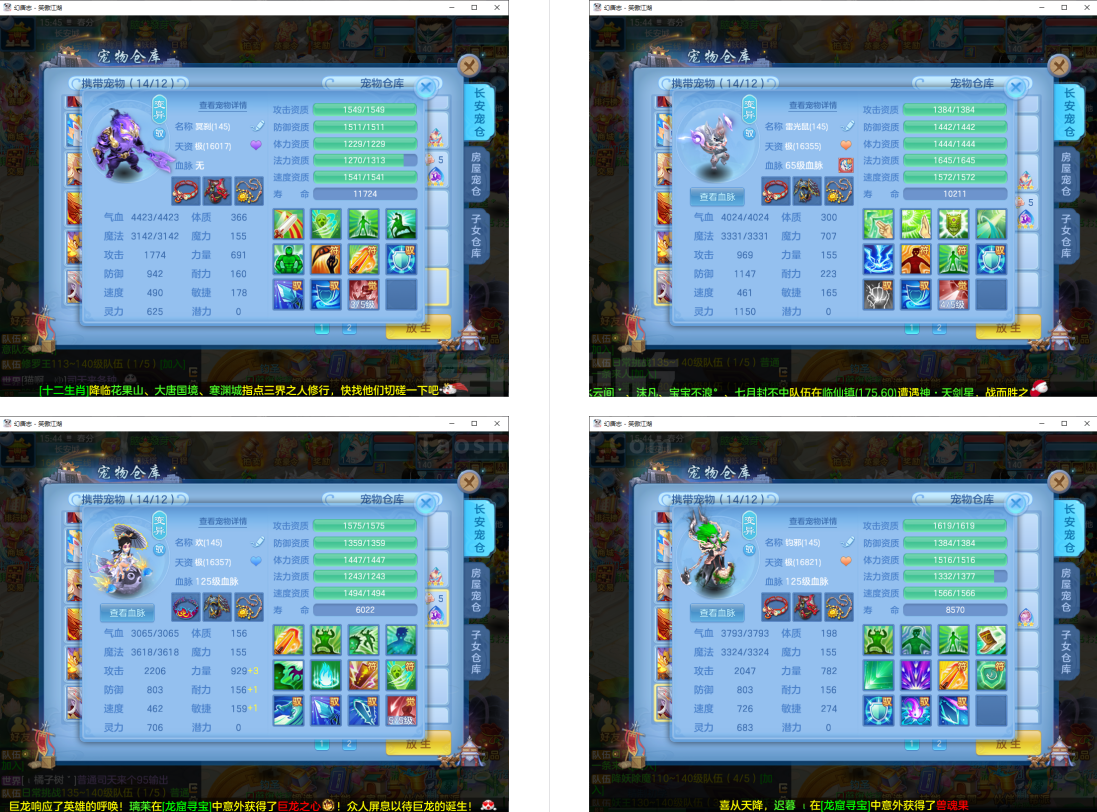 (140武侯府/男)笑傲江湖/赠送邮箱/一年换绑/有双重--2件13段3件11段1件10段,三神兽(2内丹神兽1强化蛇)7个6多特殊5,16红10专属血脉3个宝宝皮肤,大概800万银子,3365成就