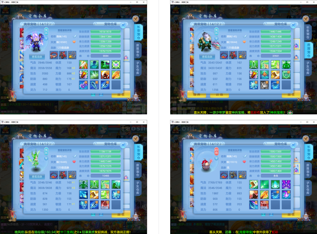 2件13段3件11段1件10段,易成长,三神兽(2内丹神兽1强化蛇)7个6多特殊5,16红10专属血脉,3个宝宝皮肤,仓库加起来大概800万银子,3365成就