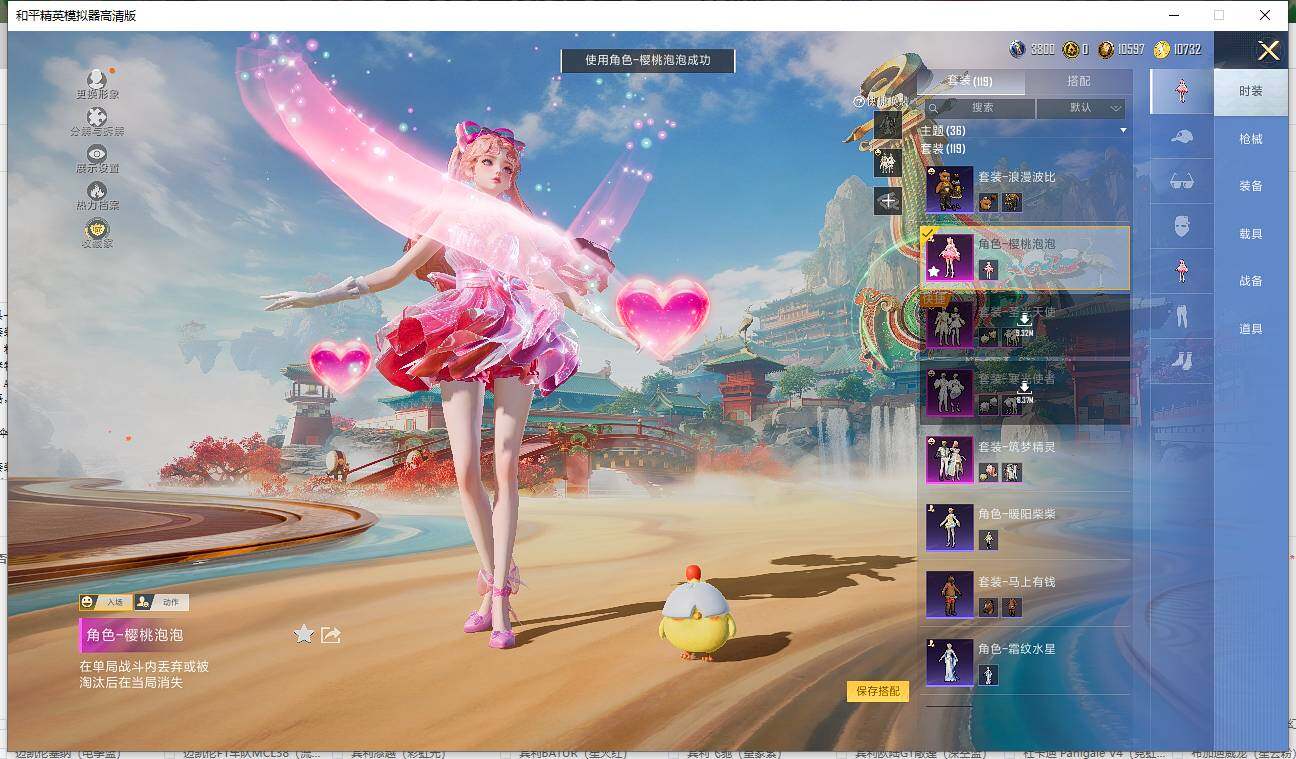 【粉色套装】:粉装-筑梦精灵,粉装-圣光天使,粉装-寒光使者,角色-樱桃泡泡