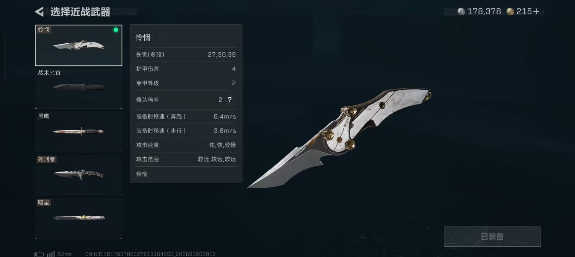 【近战皮肤】:近战-暗星,近战-怜悯,近战-处刑者1级,近战-黑鹰