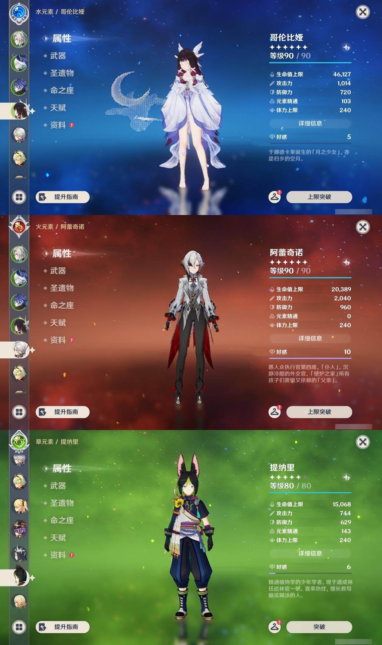 58级/26黄/女主/11个五星角色/4个五星武器