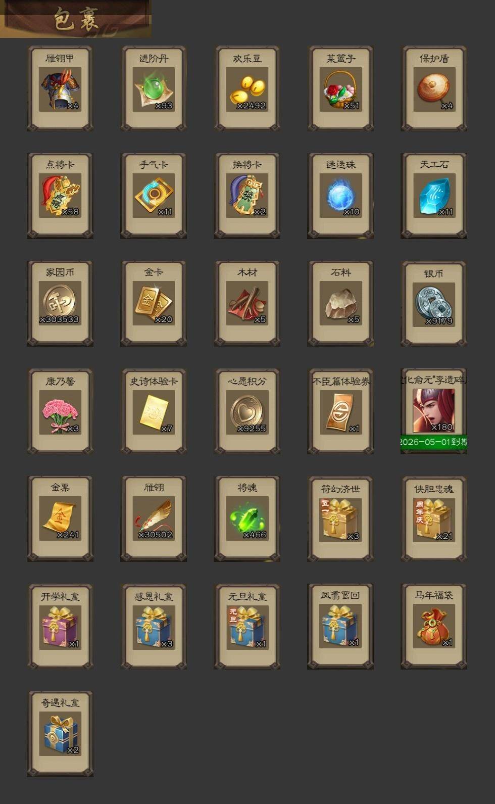 官阶:大将军;VIP等级:VIP13;史诗武将数量:59;动态皮肤数量:37;武将总数:402;史诗宝珠数量:0;将魂数量:466;神将:5;魏国史诗武将:25;蜀国史诗武将:12;吴国史诗武将:7;群史诗武将:21