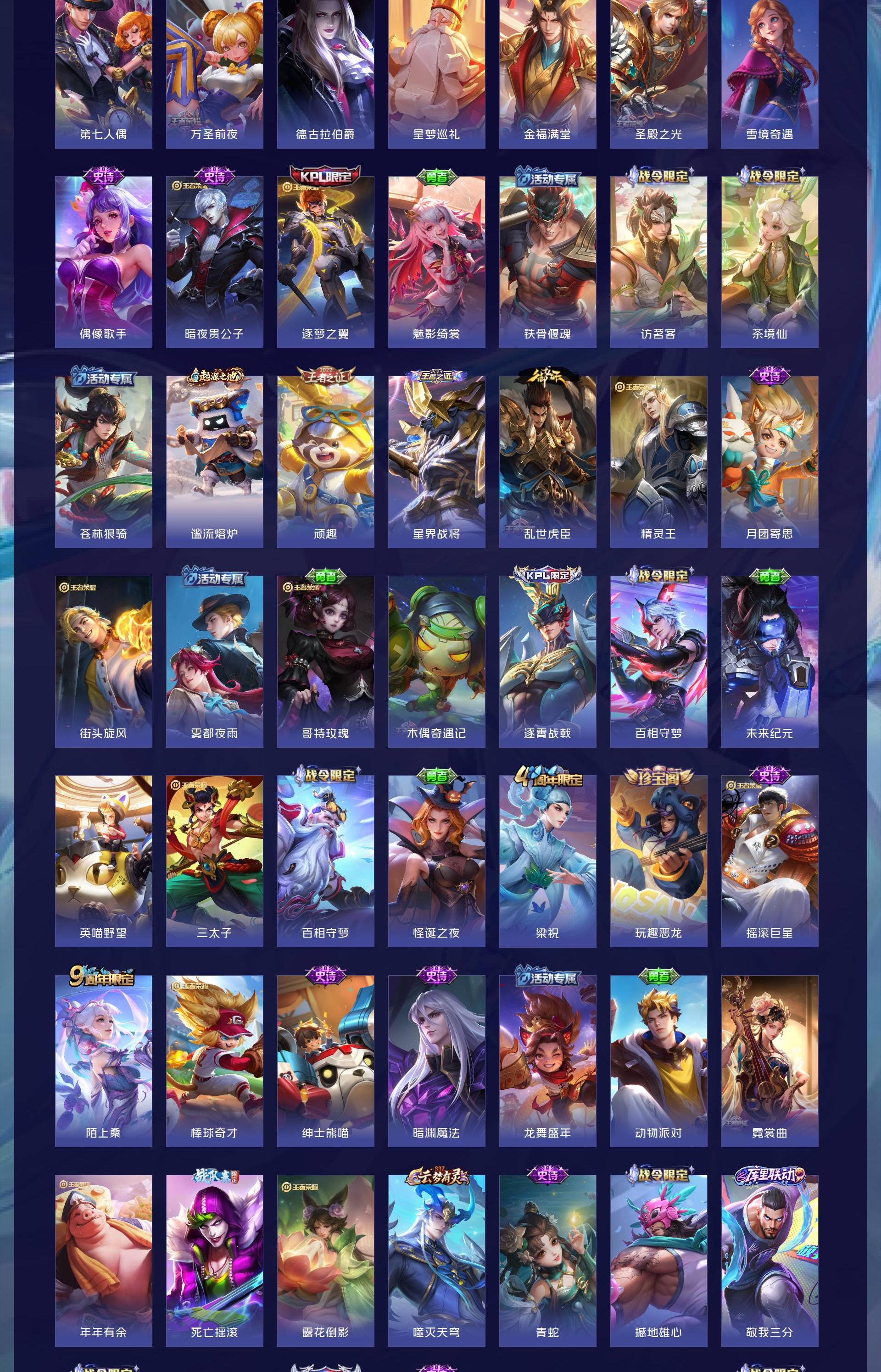 V9 皮肤473 英雄128 传奇王者 荣耀典藏4 无双皮肤4 珍品传说10 传说38