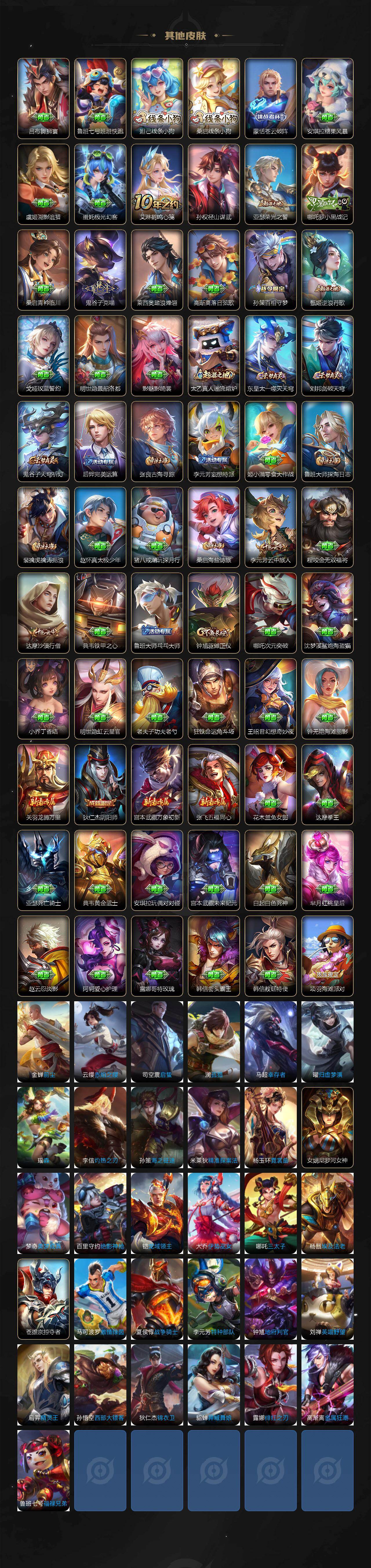 【限定皮肤】:狄仁杰阴阳师,赵云皇家上将,孙尚香蔷薇恋人,元歌无心,马可波罗山海玄木吟