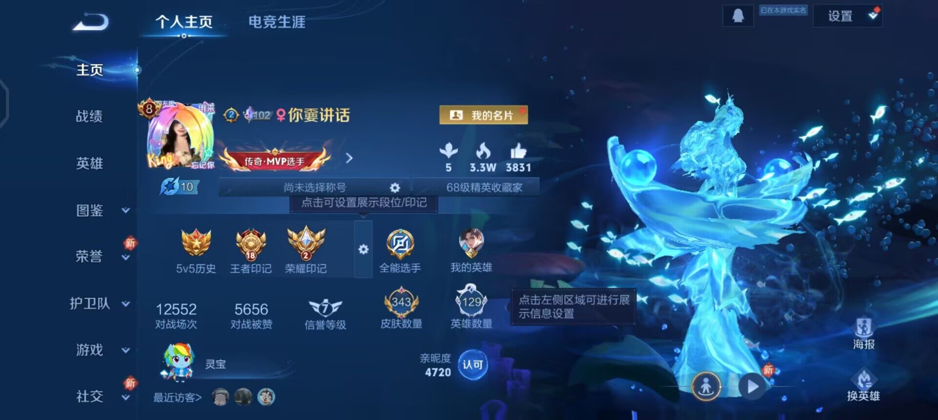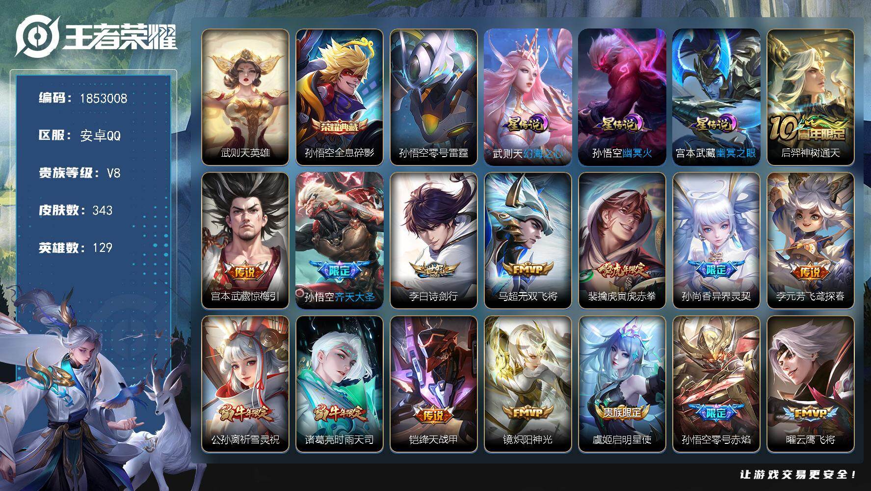 V8-最强王者段位-129英雄-343皮肤-1典藏皮肤-1典藏英雄-26传说-95史诗