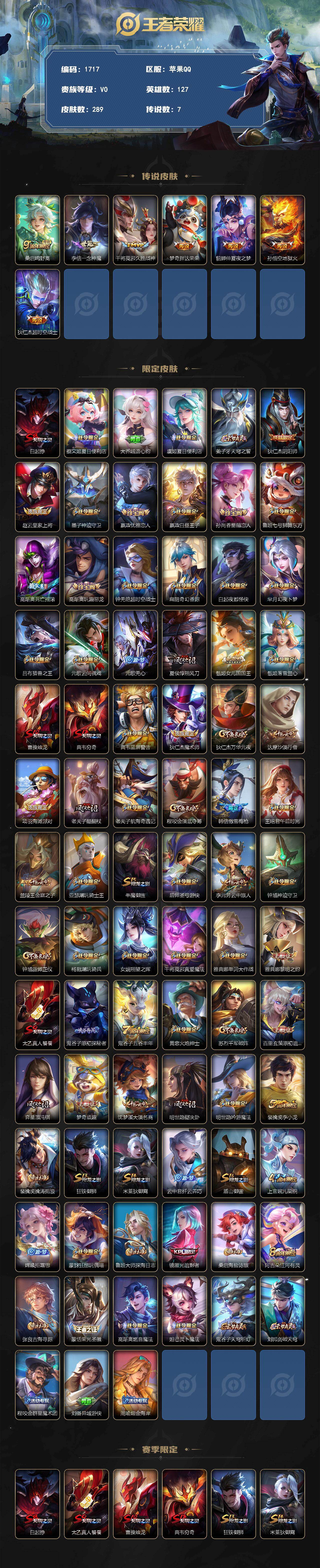 【289皮7传说 一念神魔 仲夏夜之梦 胖达荣荣】苹果Q-V0-尊贵铂金II段位-127英雄-289皮肤-7传说-72史诗