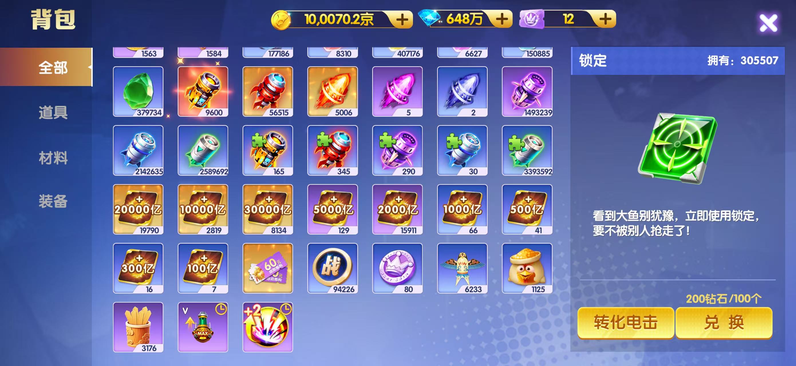 鱼乐达人 V22 10万京 弹头碎片加一起,1千万弹头 纯玩 也可以买断