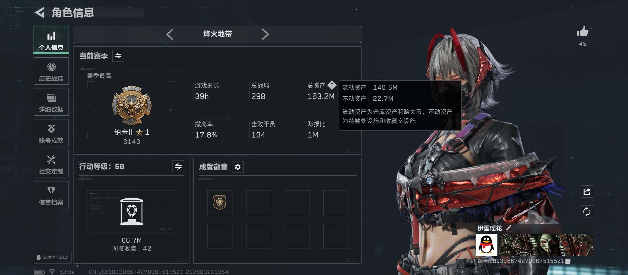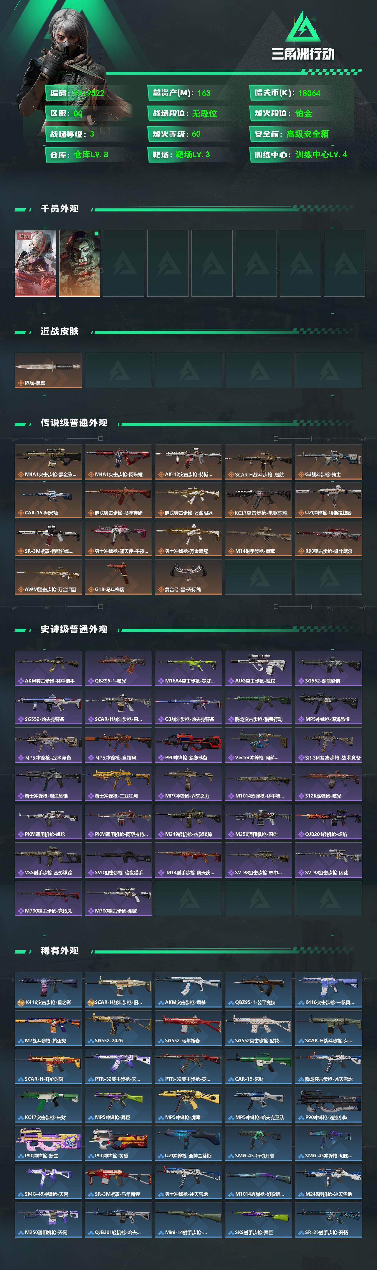 【中额资产163M+纯现金1806w+单红皮-维什戴尔】【Q区三端互通】【无二协助处理】YXz9522-特勤处:仓库8级/靶场3级/训练中心4级-总资产163m-哈夫币1806w-烽火等级:60级
