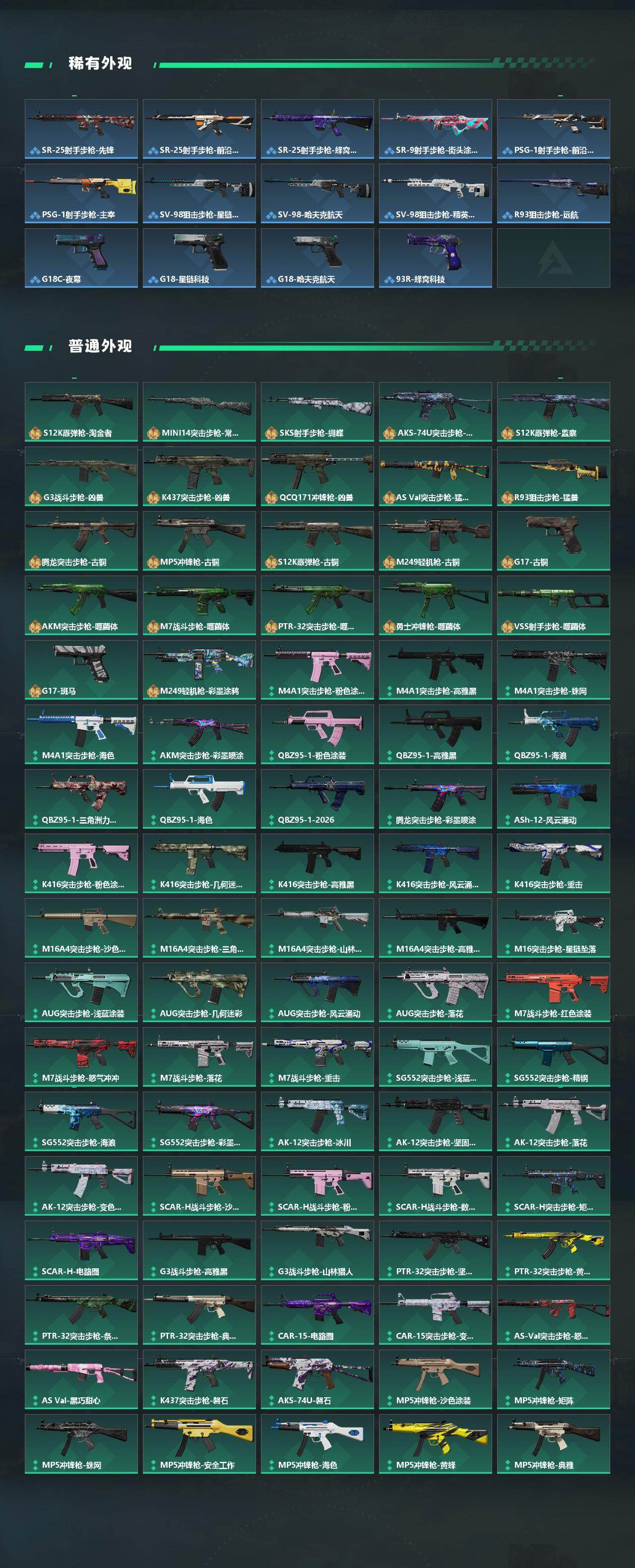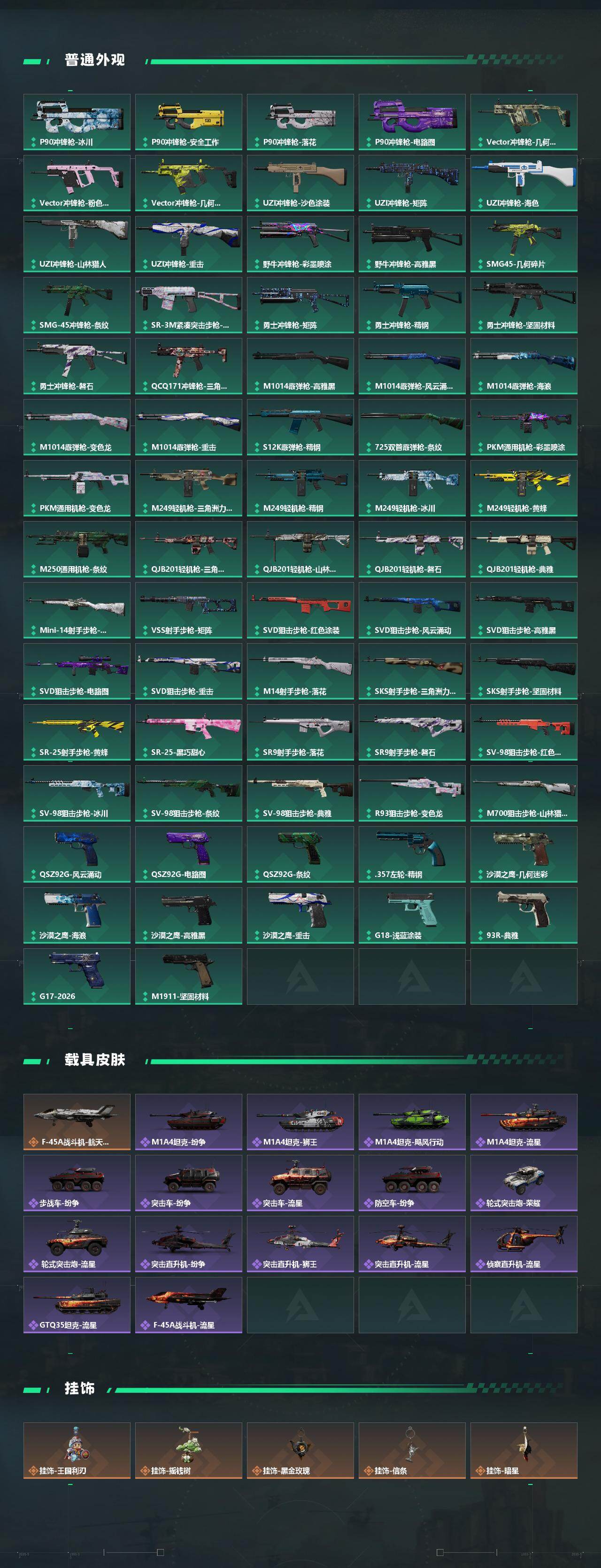 【近战皮肤】:近战-暗星,近战-信条,近战-电锯惊魂,近战-黑鹰