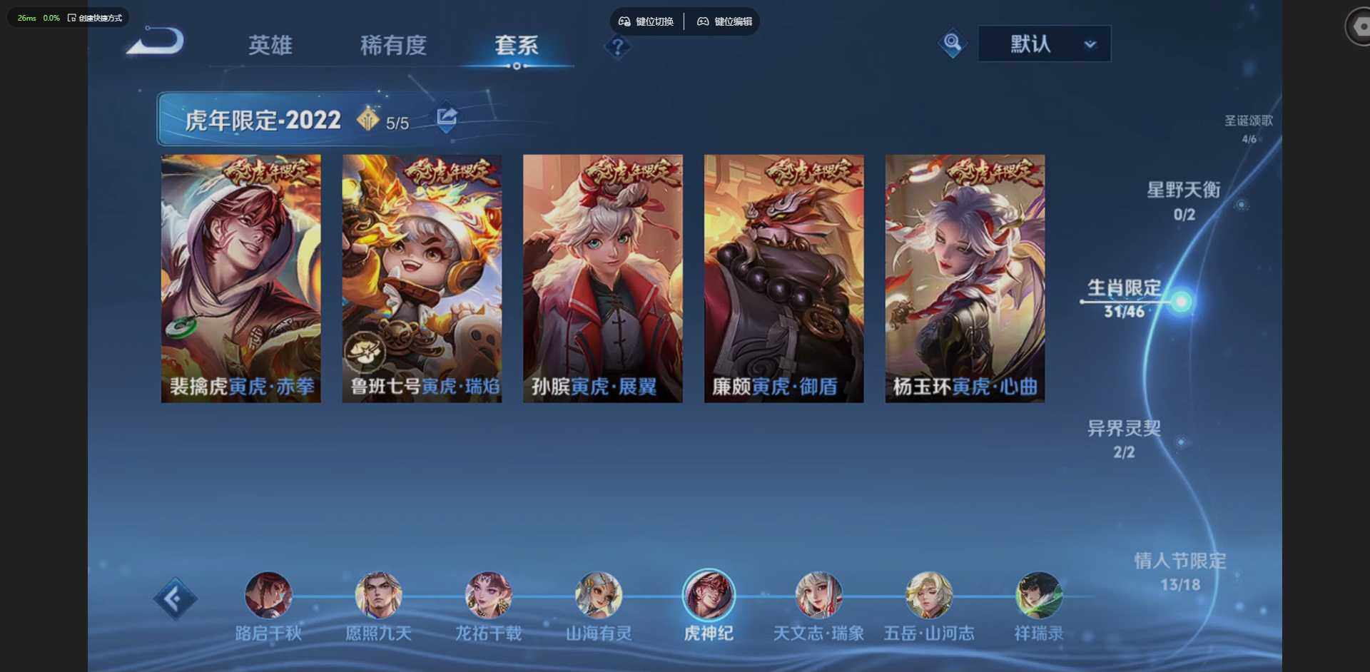 【KK3729】【兔年限定全套 虎年限定全套 牛年限定全套 鼠年限定全套 猪年限定全套】实名: 可修改 贵族等级: V10 英雄数: 129 皮肤数: 545 荣耀水晶: 武则天,天鹅之梦,星空梦想,倪克斯神谕,无限飓风号,活力突击,大秦宣太后,鸣剑·曳影,全息碎影,神鉴启示录,拾光映像 无双皮: 神器·明辉仪,天机白泽,无相,问心剑 星传说: 未来机甲,幽冥之眼,幽冥火,金色仲夏夜 传说皮: 黄金狮子座,黄金射手座,冠军飞将,云鹰飞将,绛天战甲,黄金白羊座,猫影幻舞,久胜战神,炽阳神光,一念神