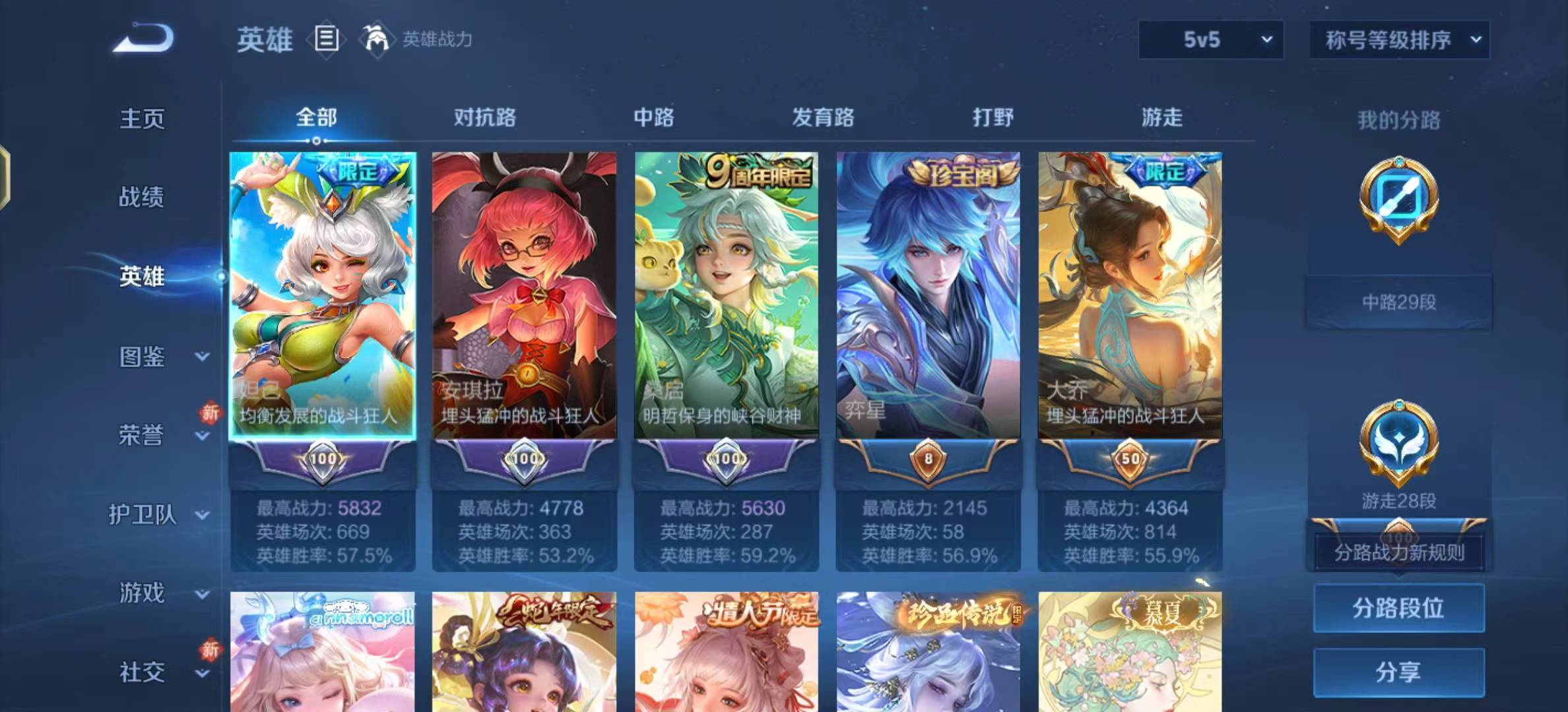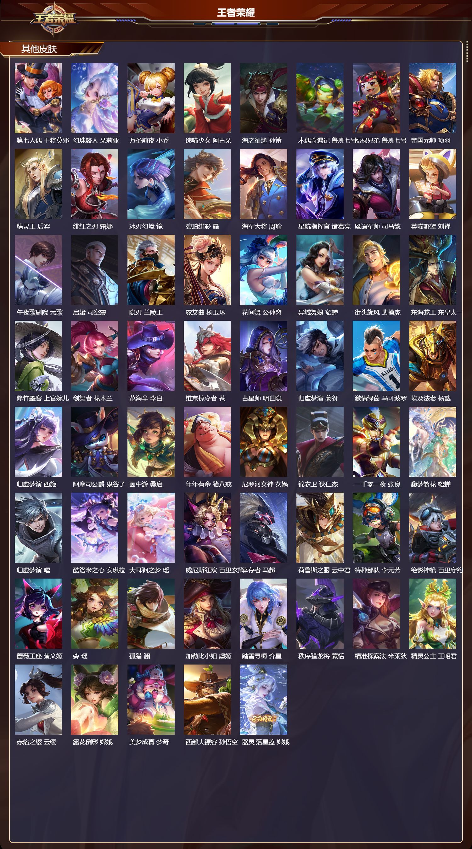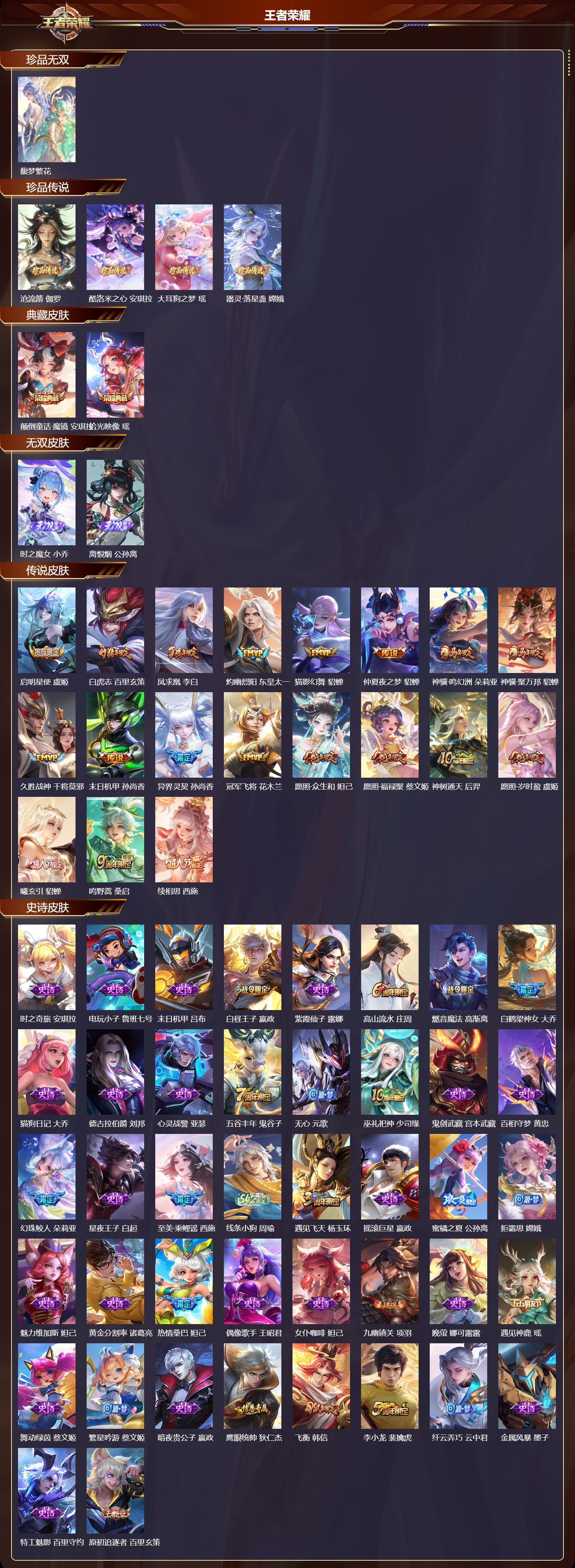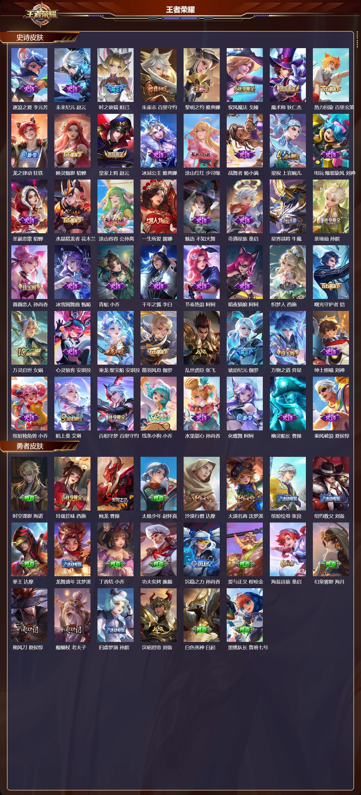 安卓QQ/荣耀王者/333皮肤/127英雄/2典藏/1珍品无双/2无双/4珍品传说/19传说/90史