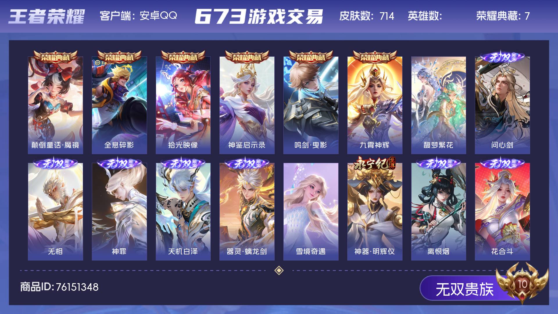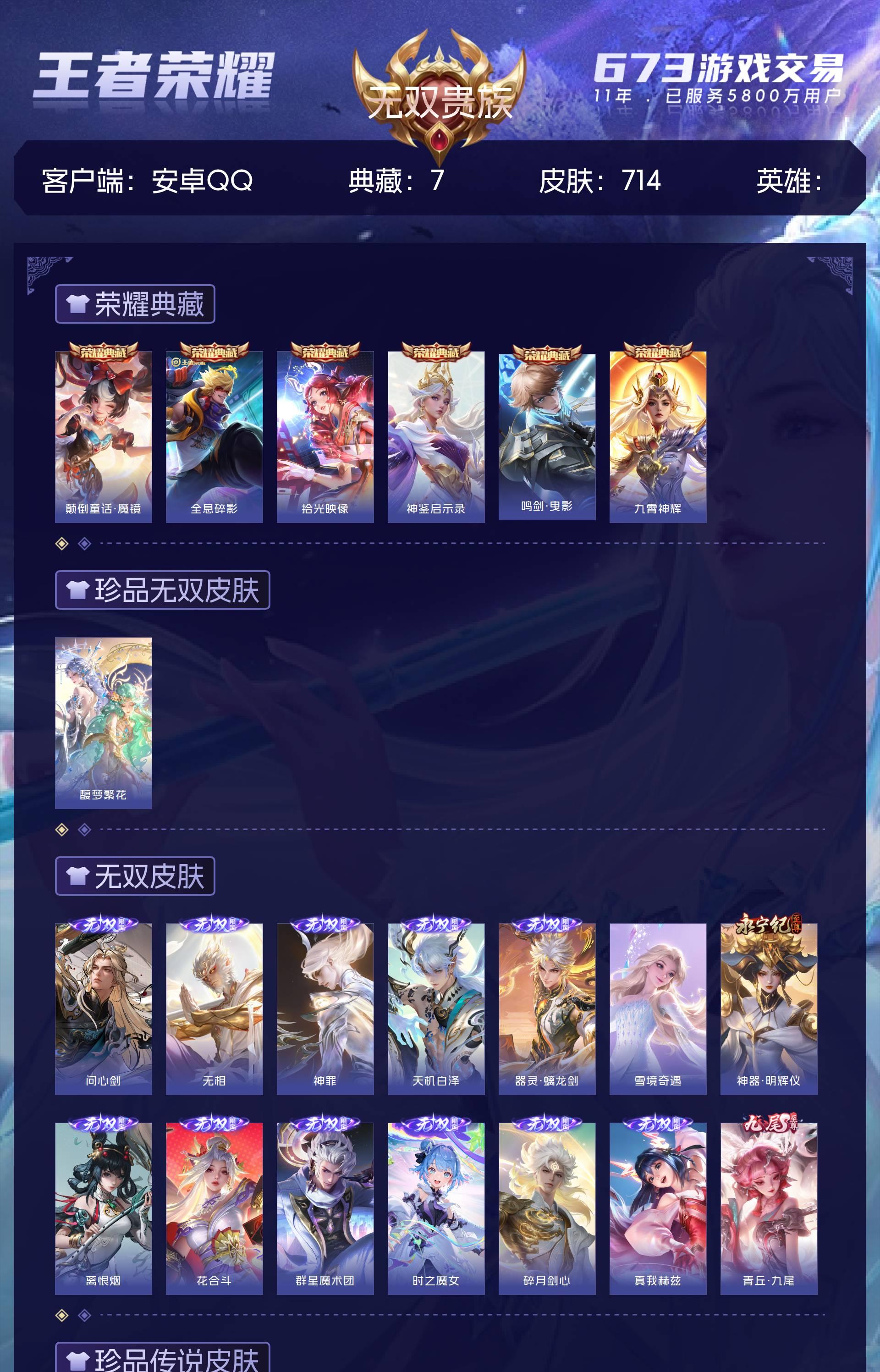 无双贵族 皮肤714 荣耀王者 荣耀典藏7 珍品无双1 无双皮肤14 珍品传说10 星传说18 传说