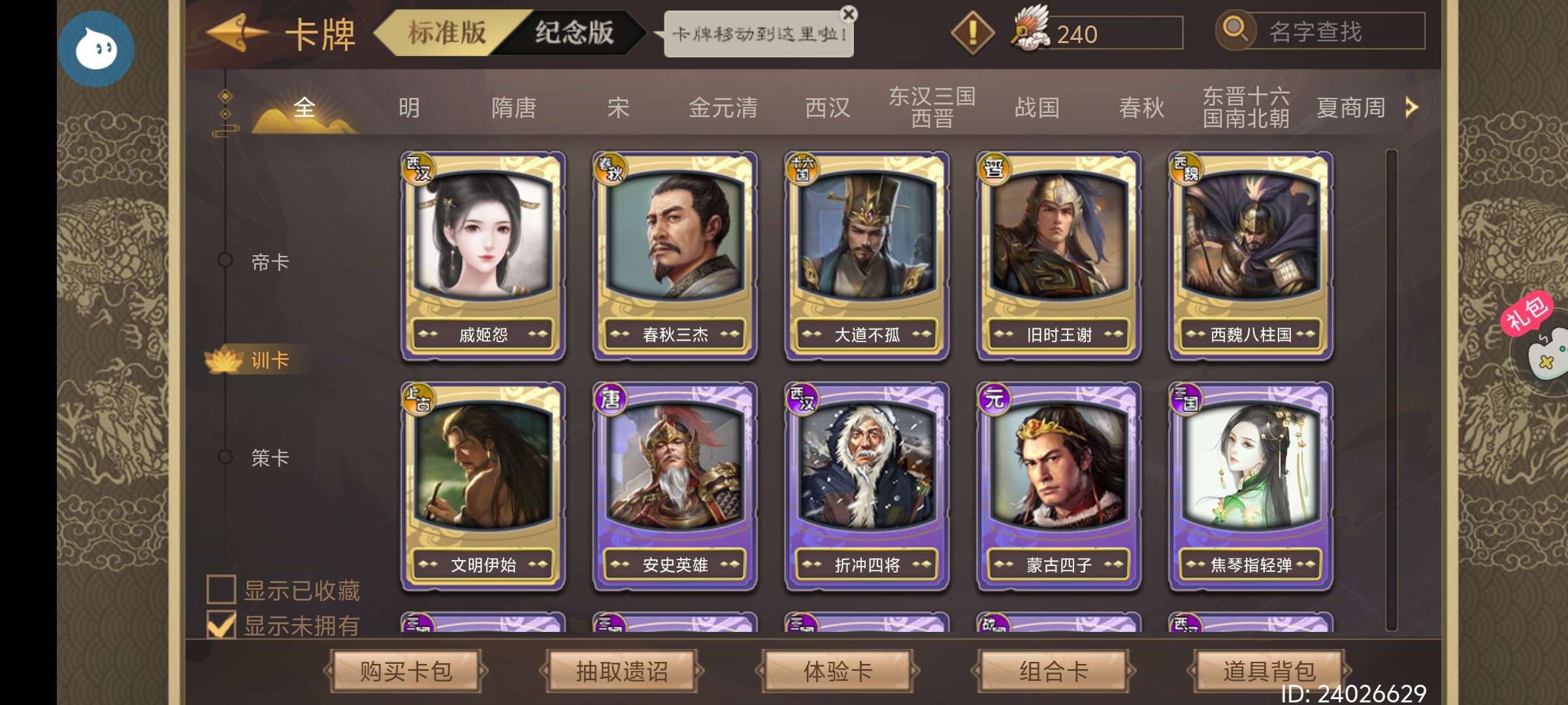 11橙卡,秦始皇帝卡策卡胡汉汇流小号玩玩可以有截图