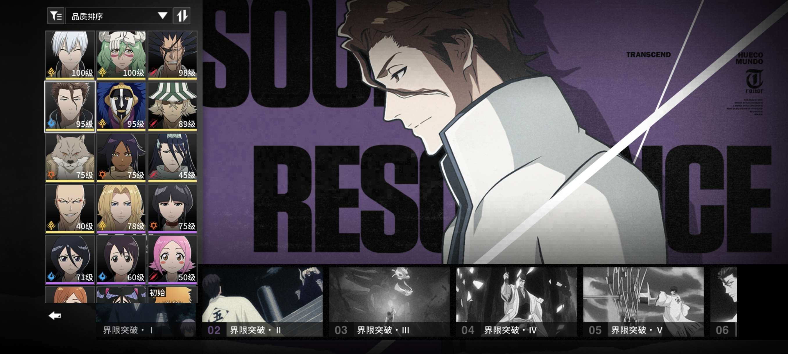 突队大毕业 二命蓝染 三命店长,二命夜一,全部有专武,专刻,常驻五星除了东仙都有 四星全6命