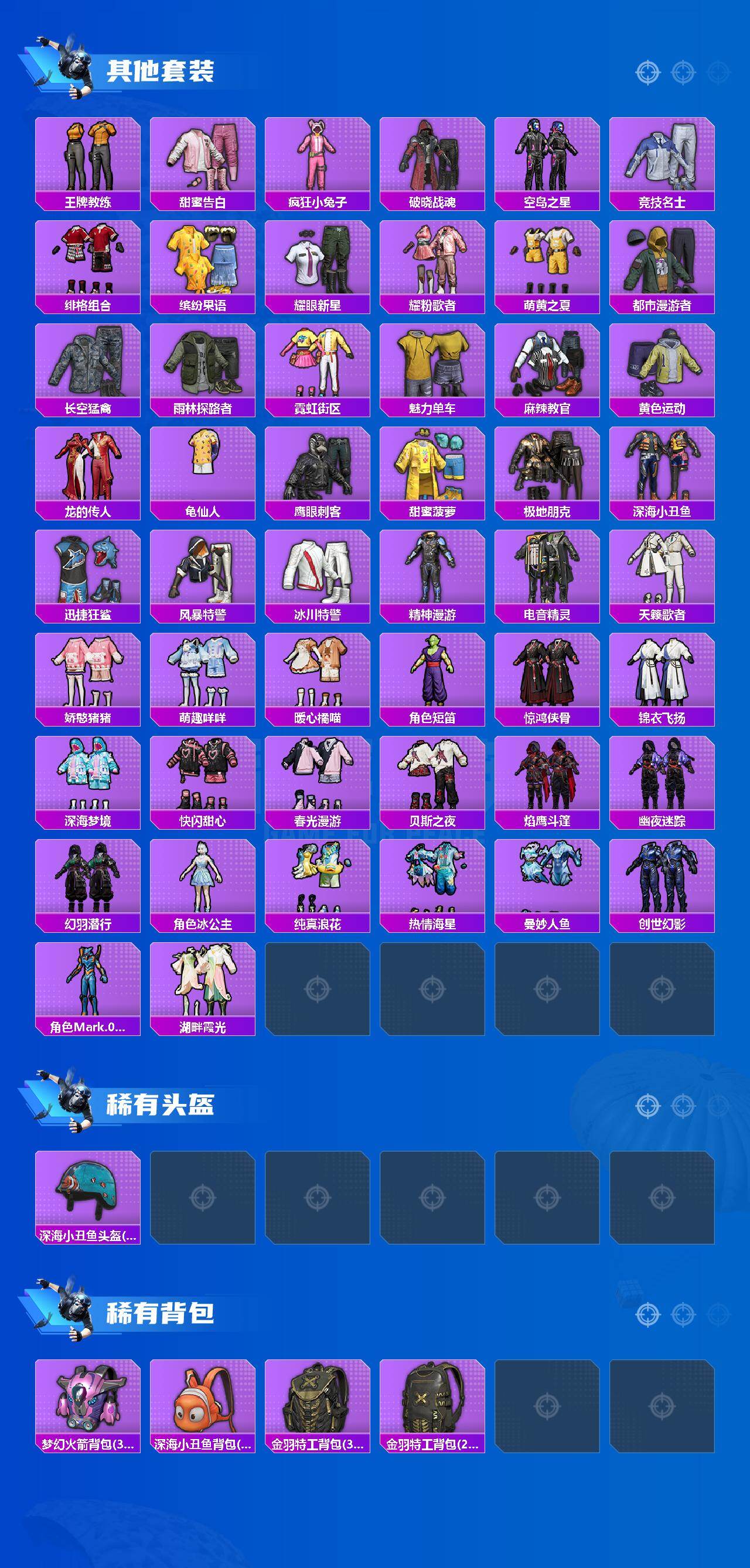 【热门品类】:套装-浪漫天命,套装-深海小丑鱼,套装-龟仙人,套装-暗影哥特,角色-Mark.06